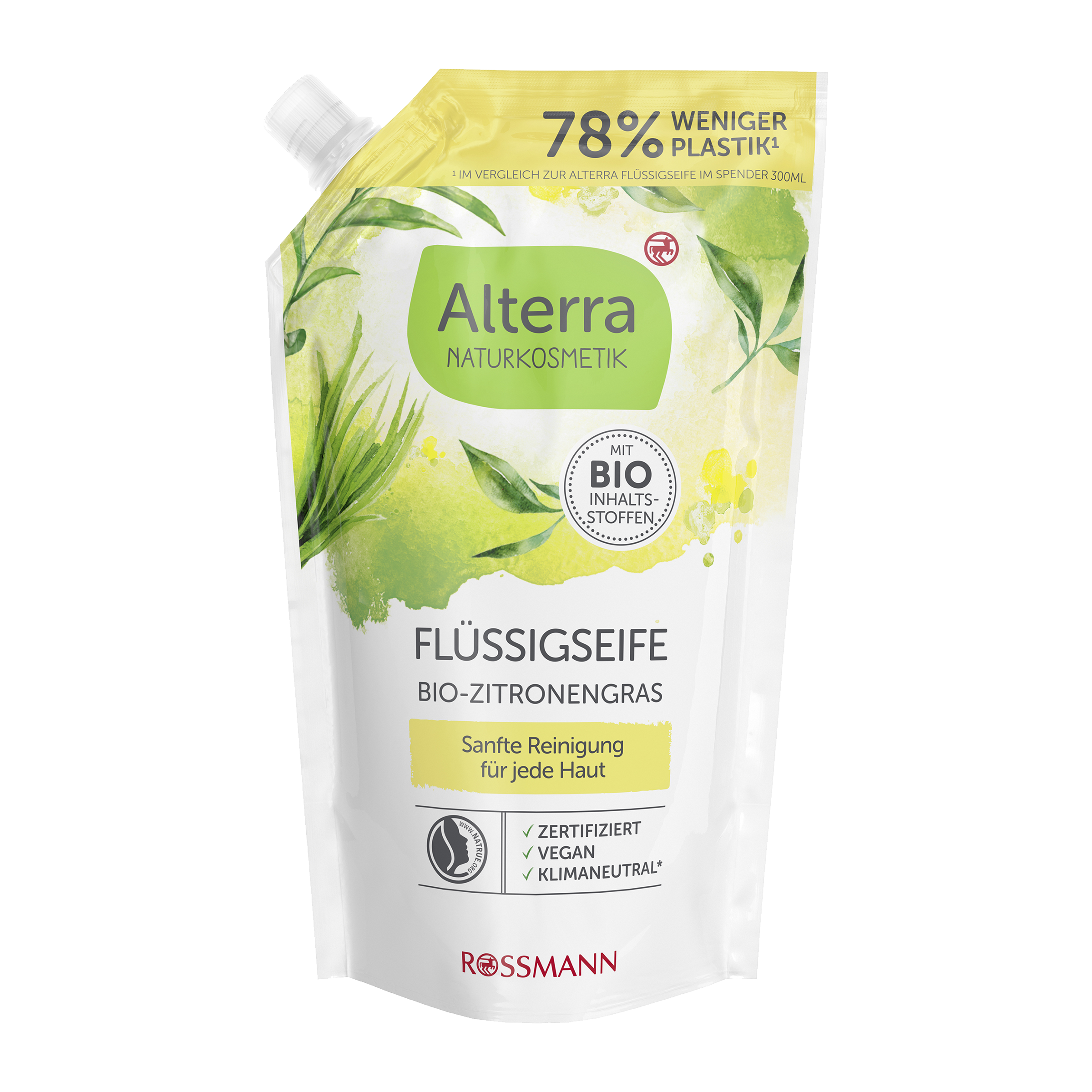 Naše tekuté mýdlo Alterra s organickou citronovou trávou a extraktem z organického zeleného čaje jemně čistí ruce a svádí vaše smysly citrusově svěží přírodní vůní.