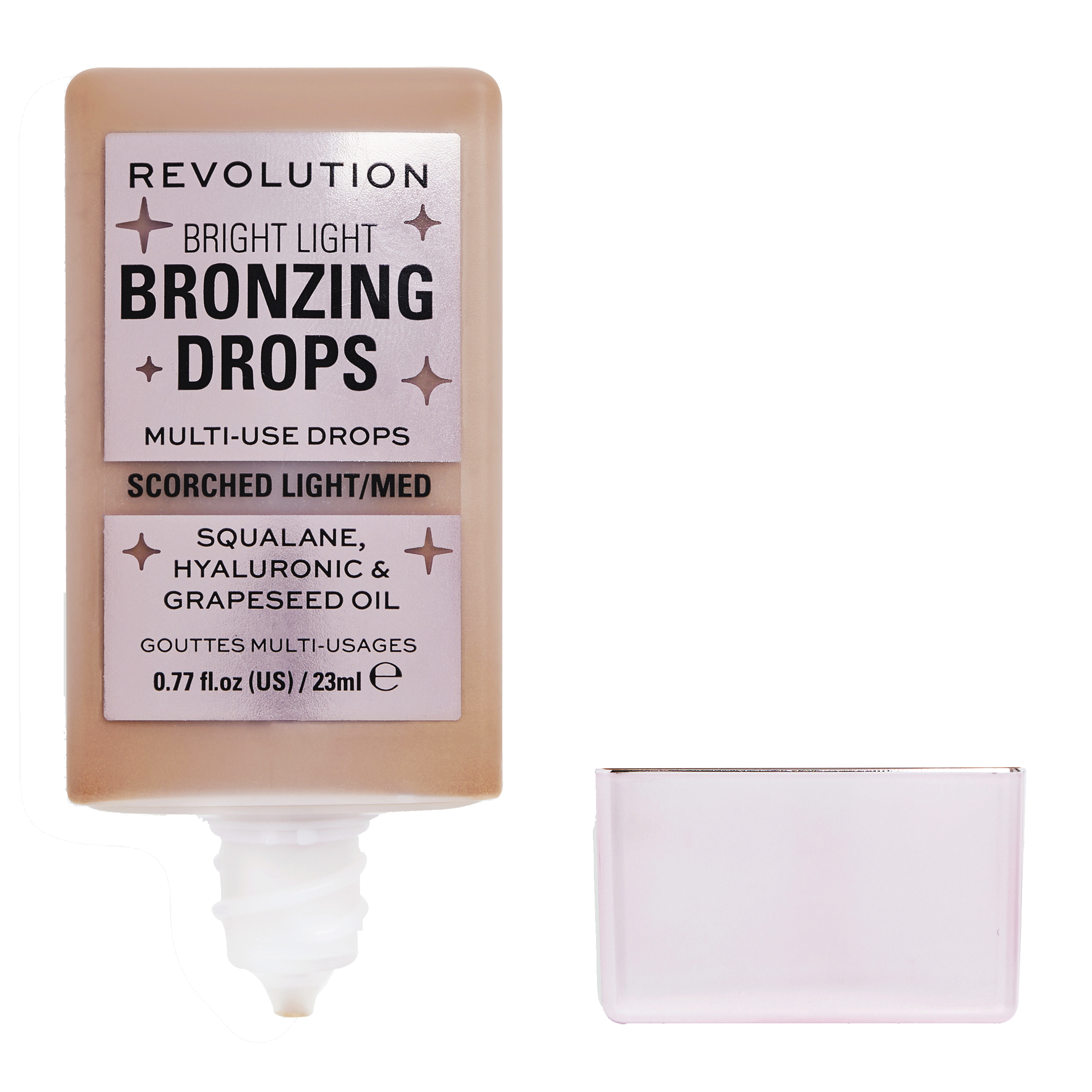 Sluncem políbená pleť během několika vteřin! Instantní rozjasnění; bronz a lesk podle vašich představ s bronzujícími kapkami The Revolution Bright Light! Tyto snadno přizpůsobitelné kapky jsou vaší odpovědí na okamžitý vzhled opálené pleti bez poškození. Složení s hydratační směsí skvalanu, kyseliny hyaluronové a oleje z hroznových semínek pomáhá zjemnit, zklidnit a zvýšit pružnost pleti a dodat jí mladistvý lesk.