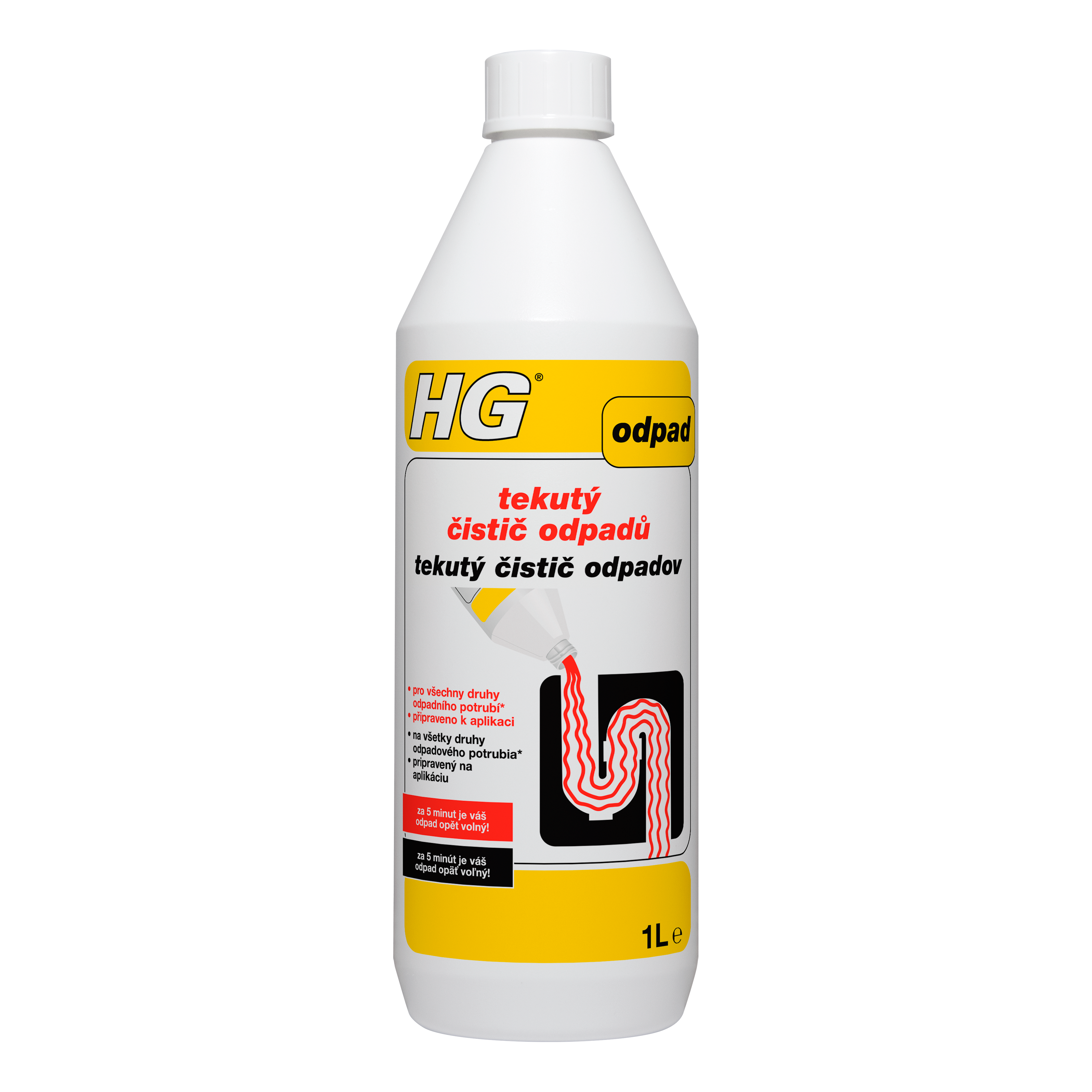 Opatrně nalijte 3 šálky (300 ml) HG "tekutý čistič odpadů" do ucpaného odpadu. Nechte působit 30 minut a odpad dobře propláchněte vodou. V případě úporného ucpání, přičemž odpad již neodtéká, napusťte umývadlo nebo dřez teplou vodou. Poté přidejte 3 šálky (300 ml) HG "tekutý čistič odpadů" a nechte působit přes noc. Následující ráno odpad propláchněte teplou vodou. Tím, že HG „tekutý čistič odpadů“ je těžší než voda, klesá ve vodě dolů směrem k ucpání. Kombinace výrobku s tlakem vody odstraní úporné ucpání. V případě velmi silných ucpání, způsobených zbytky jídla a tuků, používejte přednostně HG "tekutý čistič kuchyňských odpadů".