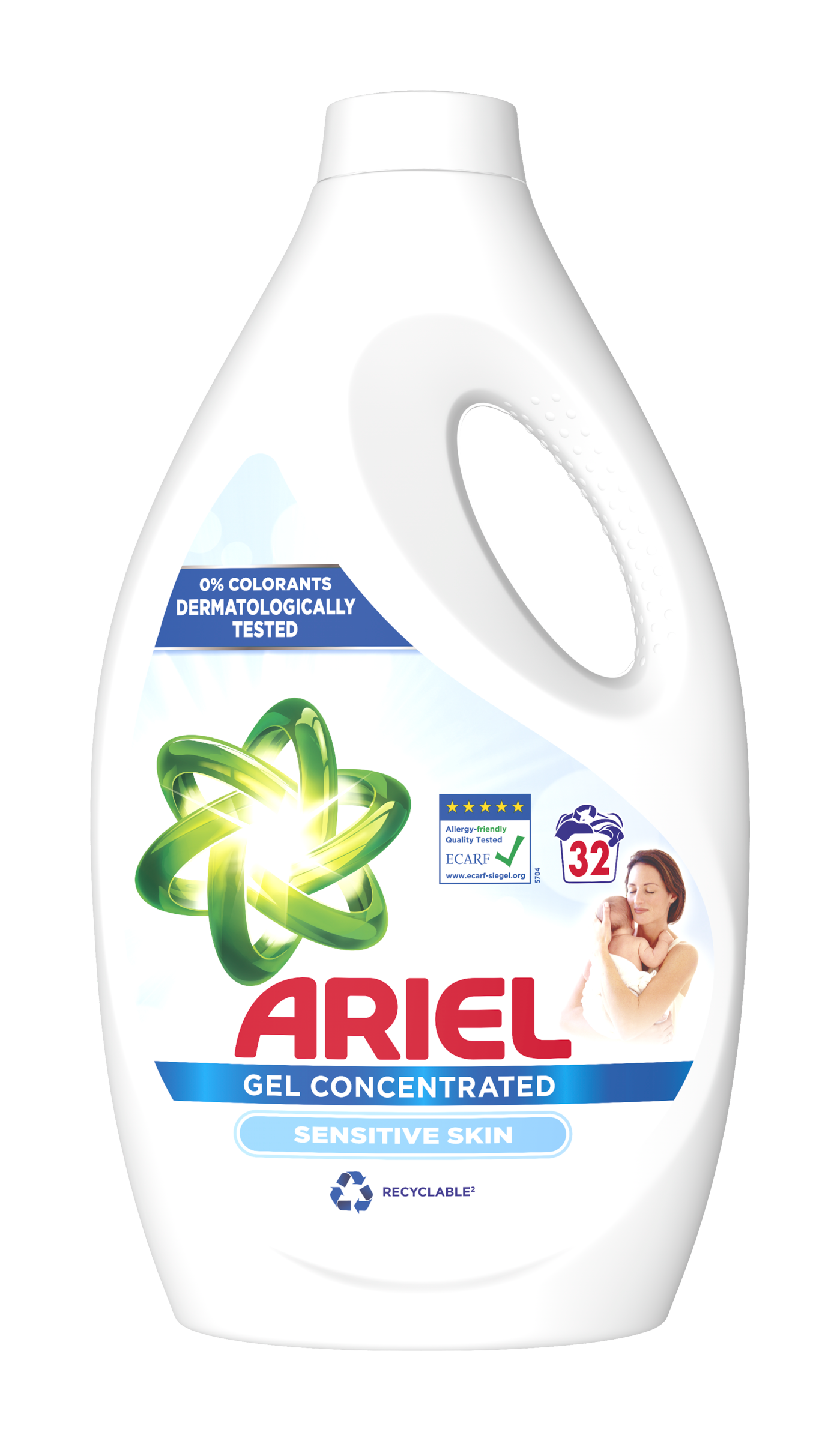 Díky jemnému a šetrnému složení je tekutý prací prostředek Ariel Sensitive Skin ideálním řešením pro důkladné praní vašeho oblečení i oblečení vaší rodiny, pokud máte citlivou pokožku.Dermatologicky testované složení s certifikací ECARF obsahuje 0 % barviv. Vůně byla speciálně navržena se sníženým obsahem alergenů. Složení chrání hebkost oblečení, které přichází do kontaktu s citlivou pokožkou, a nabízí tak nejlepší ochranu od Arielu. I když je jemný k pokožce, je zároveň účinný proti skvrnám: Tekutý prací prostředek Ariel Sensitive Skin zajistí prádlu skvělou čistotu Arielu i při praní na nízkou teplotu. Tekutý prací prostředek Ariel má navíc recyklovatelný obal. Aby byly výsledky praní co nejlepší, vložte odměrku naplněnou pracím prostředkem přímo do bubnu pračky.