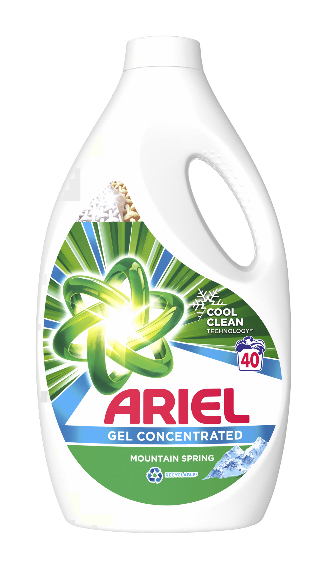 Tekutý prací prostředek Ariel Mountain Spring skvěle vypere už při 1. praní i při nižší teplotě. Jeho složení bylo navrženo speciálně pro praní ve studené vodě a obsahuje technologii COOL CLEAN. Tekutý prací prostředek Ariel také rozjasňuje bílé prádlo a brání tvorbě skvrn od potu. Tekutý prací prostředek Ariel má navíc recyklovatelný obal. Tekutý prací prostředek Ariel Mountain Spring můžete také nanést pomocí zelené odměrky přímo na skvrny a až poté vložit prádlo do pračky. Aby byly výsledky praní co nejlepší, vložte odměrku naplněnou pracím prostředkem přímo do bubnu pračky. Abychom chránili životní prostředí, nedáváme odměrku ke všem lahvím. Odměrka je dostupná zdarma na webové stránce ariel.info.
