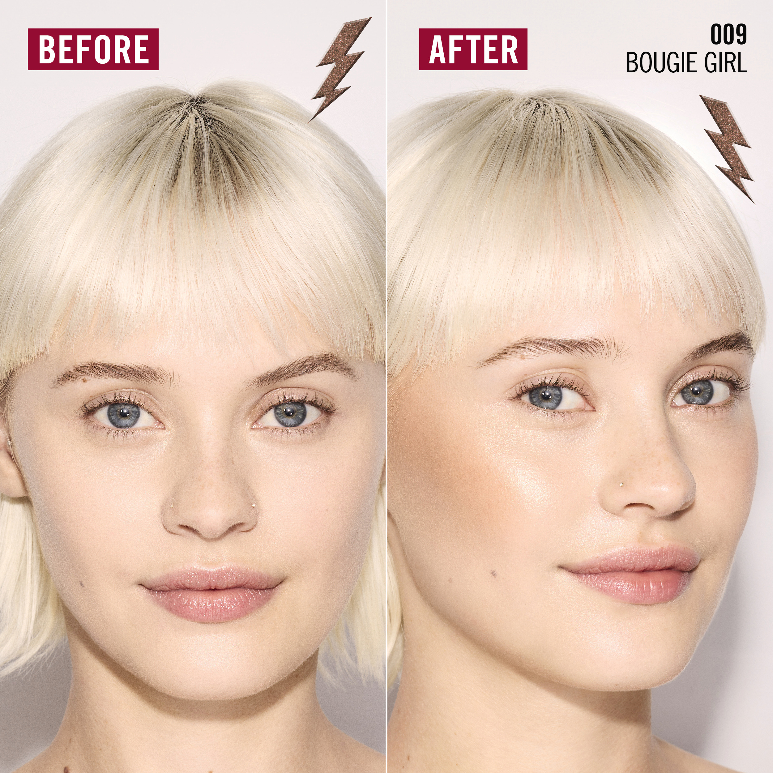 Pomocí velkého měkkého aplikátoru naneste malé množství tekutého bronzeru pod lícní kosti, na čelo, hranu nosu nebo linii čelisti pro efekt přirozeně opálené pleti. Jemně rozetřete prsty, houbičkou nebo štětcem do ztracena. Pro intenzivnější efekt lze barvu snadno vrstvit. Pro dosažení jedinečného vzhledu kombinujte s tvářenkou ze stejné řady.