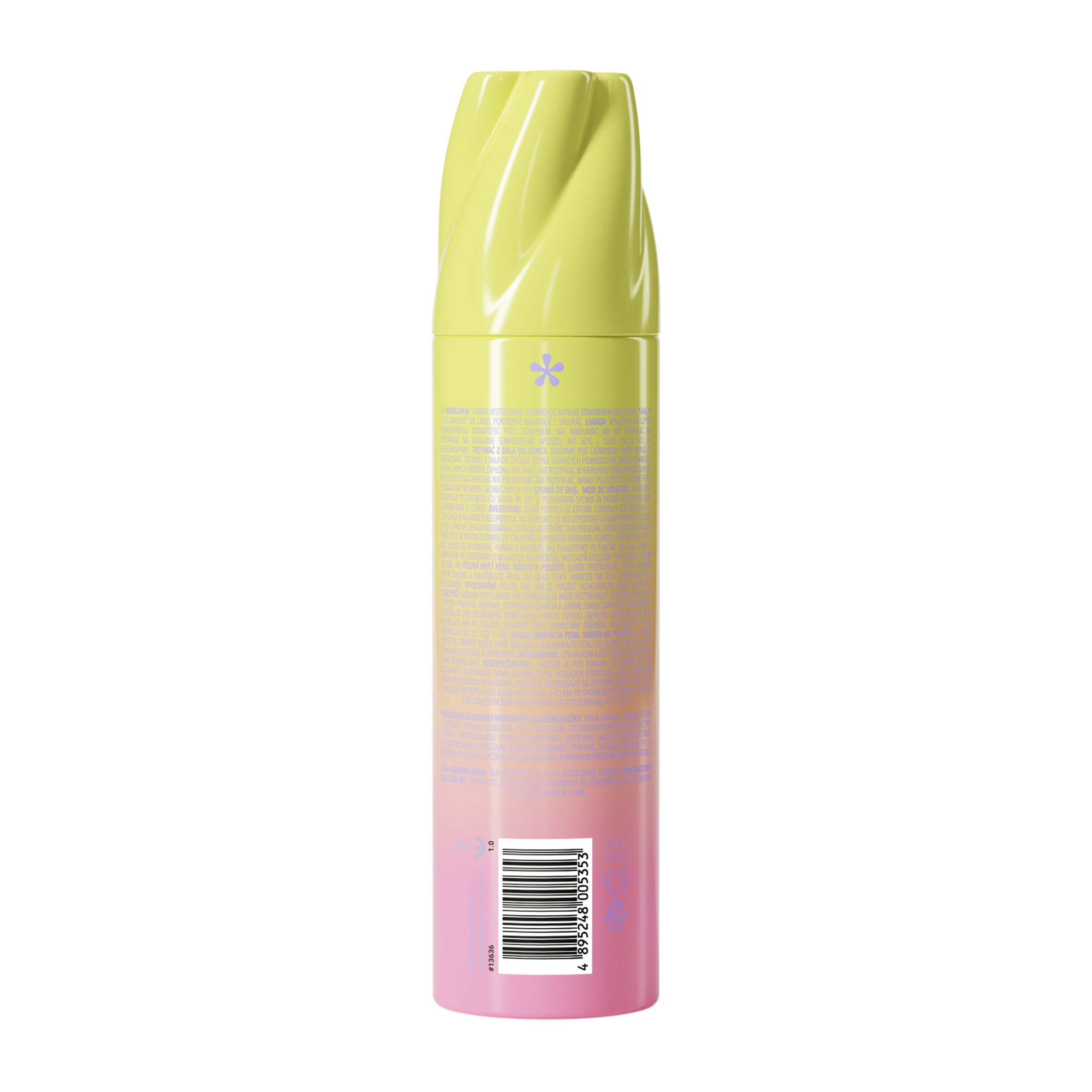 Aqua (Water), Butane, Potassium Cocoyl Glycinate, Isobutane, Glycerin, Coco-Glucoside, Propane, Cocamidopropyl Betaine, Lauryl Hydroxysultaine, Hydrogenated Starch Hydrolysate, Terminalia Ferdinandiana Fruit Extract, Potassium Chloride, Maltooligosyl Glucoside, Phenoxyethanol, Potassium Cocoate, Parfum (Fragrance), Sodium Chloride, TEA-Cocoyl Glutamate, PPG-10 Sorbitol, Citric Acid, Ethylhexylglycerin, Sodium Lauryl Glycol Carboxylate, BHT, Linalool.