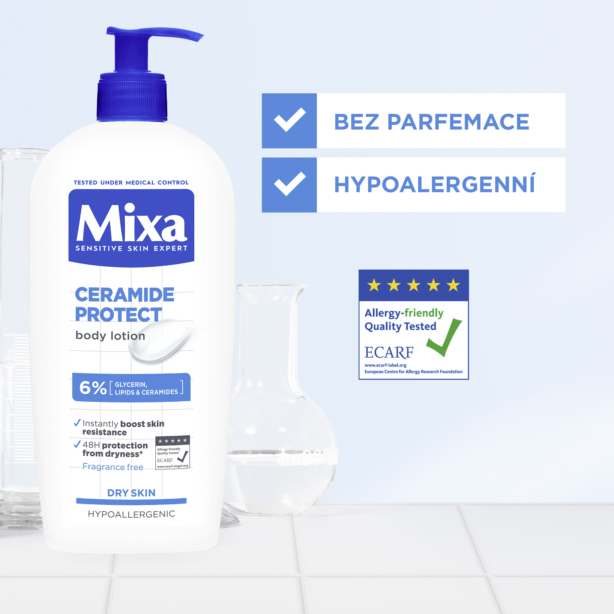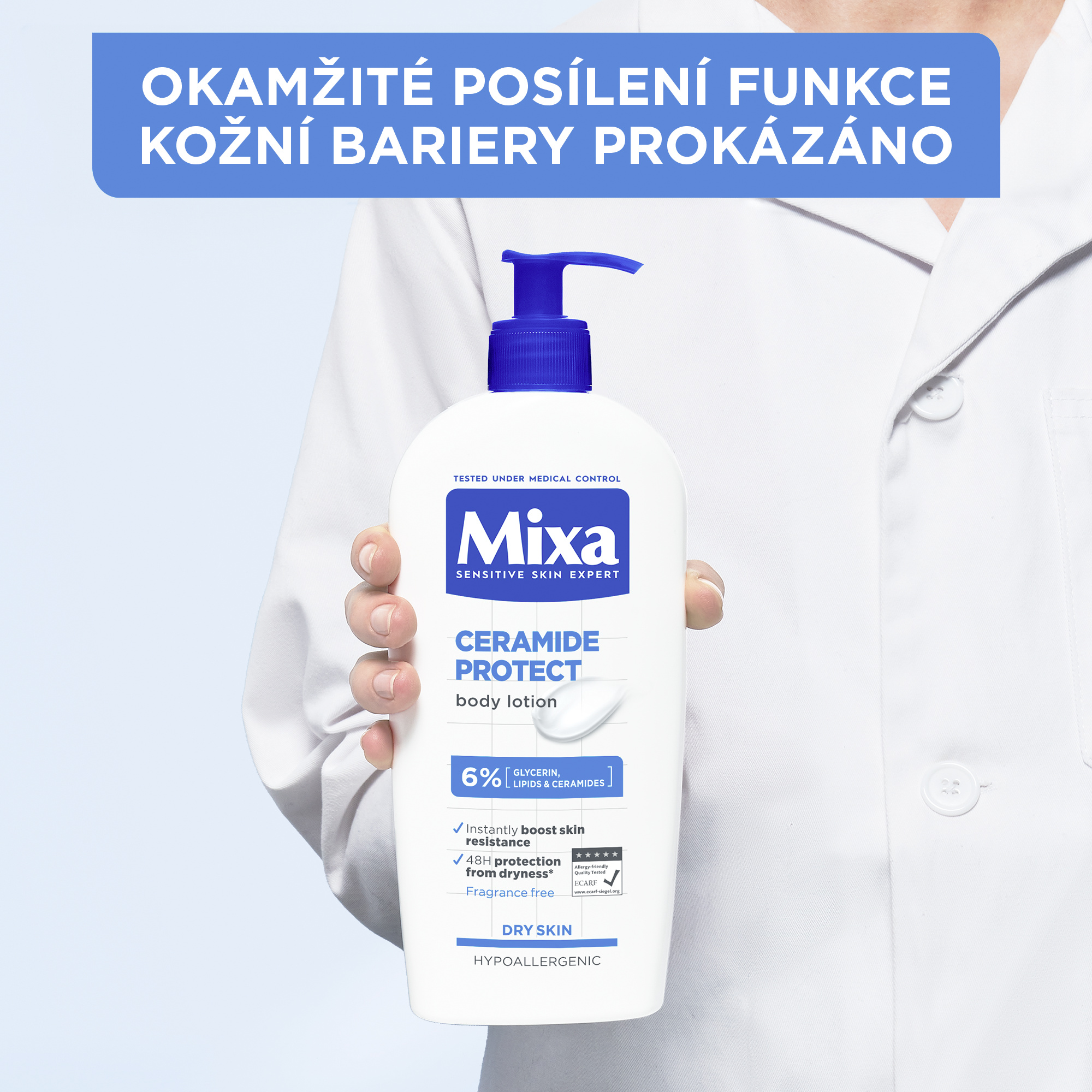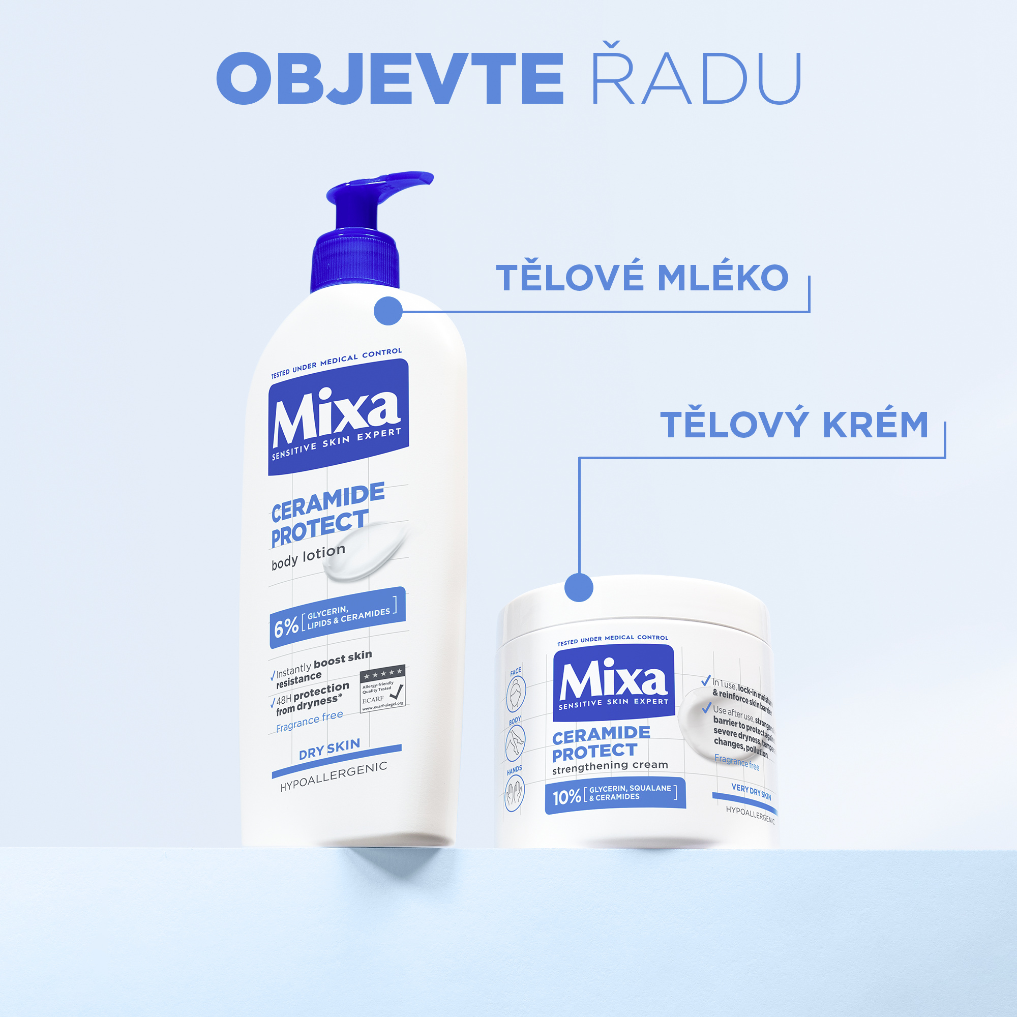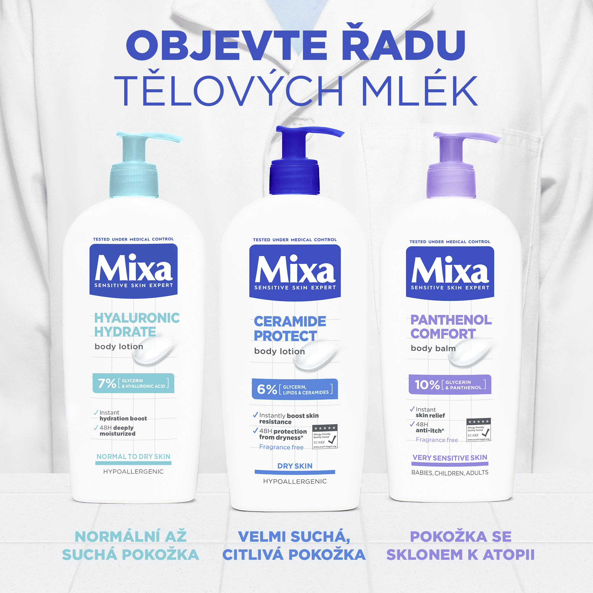 Mixa ochranná tělová péče pro velmi suchou pokožku s jemným složením. Hypoalergenní složení obohacené o ceramidy, lipidy a glycerin. Ceramidy a lipidy posilují ochrannou bariéru pokožky. Glycerin je známý pro své intenzivní hydratační a ochranné vlastnosti.