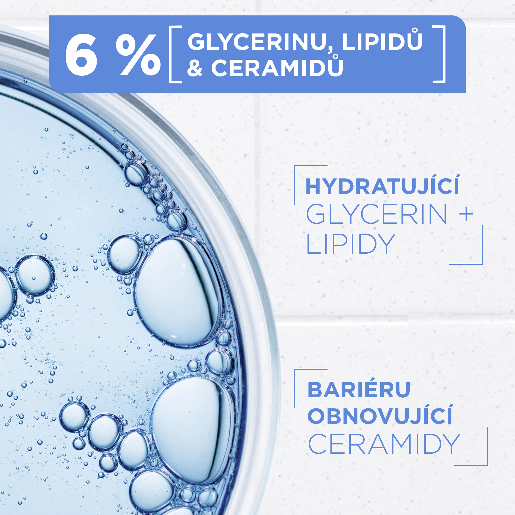 Hypoalergenní složení obohacené o ceramidy, lipidy a glycerin. Nemastná textura, která se rychle vstřebává do pokožky.