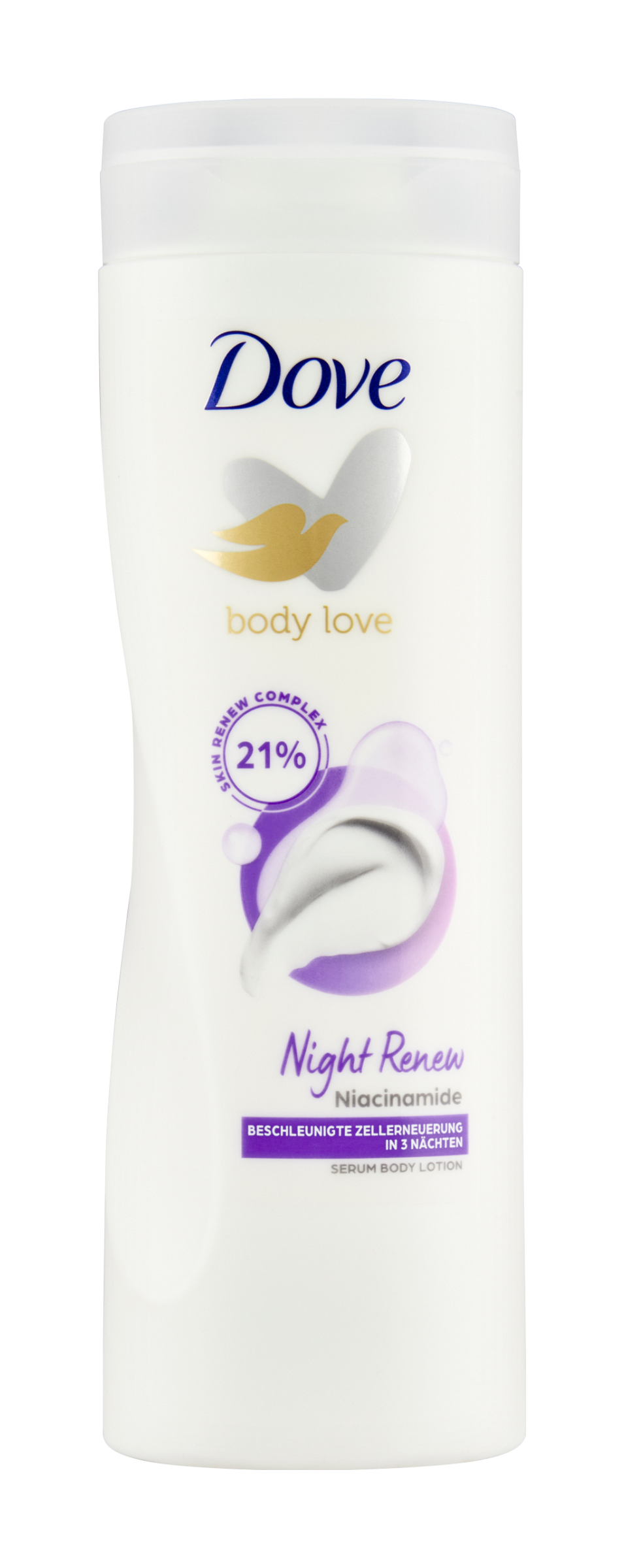 Nechte své tělo okusit dokonalou péči s novým nočním tělovým sérem Dove Night Renew. Toto vysoce účinné sérum s aktivními složkami, které již znáte z produktů pro pleťovou péči, bylo speciálně vyvinuto pro obnovu vaší pokožky během noci. Jeho unikátní 21% Skin Renew komplex s niacinamidem vám umožní za pouhé 3 noci urychlit regeneraci kožních buněk. Jeho lehká textura se rychle vstřebává, revitalizuje vaši pleť během spánku a jeho relaxační a příjemná vůně dodá večerní péči tu správnou atmosféru. Díky obsahu vitaminu B3 proniká účinné složení hluboko do povrchových vrstev vaší pokožky, podporuje její obnovu a přináší úžasný výsledek - zářivě krásnou a regenerovanou pleť, která je hydratovaná po dobu až 72 hodin. Nenechte svou pleť čekat. Vyzkoušejte Dove Night Renew noční tělové sérum a dopřejte svému tělu tu nejlepší péči každou noc.