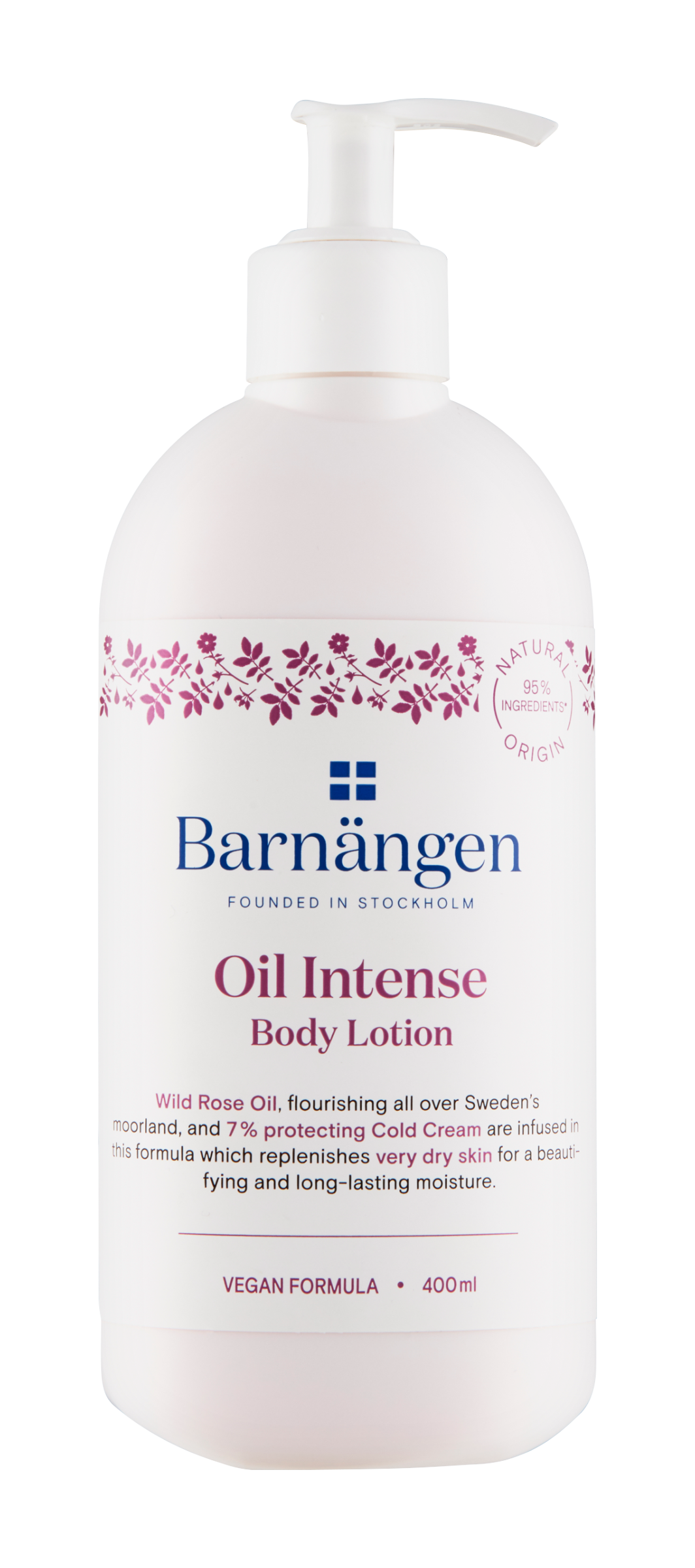 Zažijte naše Oil Intense tělové mléko. Kombinace růžového oleje z divokých rostlin, které pokrývají švédská vřesoviště, a 7% ochranného Cold Cream v jednom složení, které pečuje o velmi suchou pokožku pro dlohotrvající hydrataci. 90% ingrediencí přírodního původu.* *včetně vody.