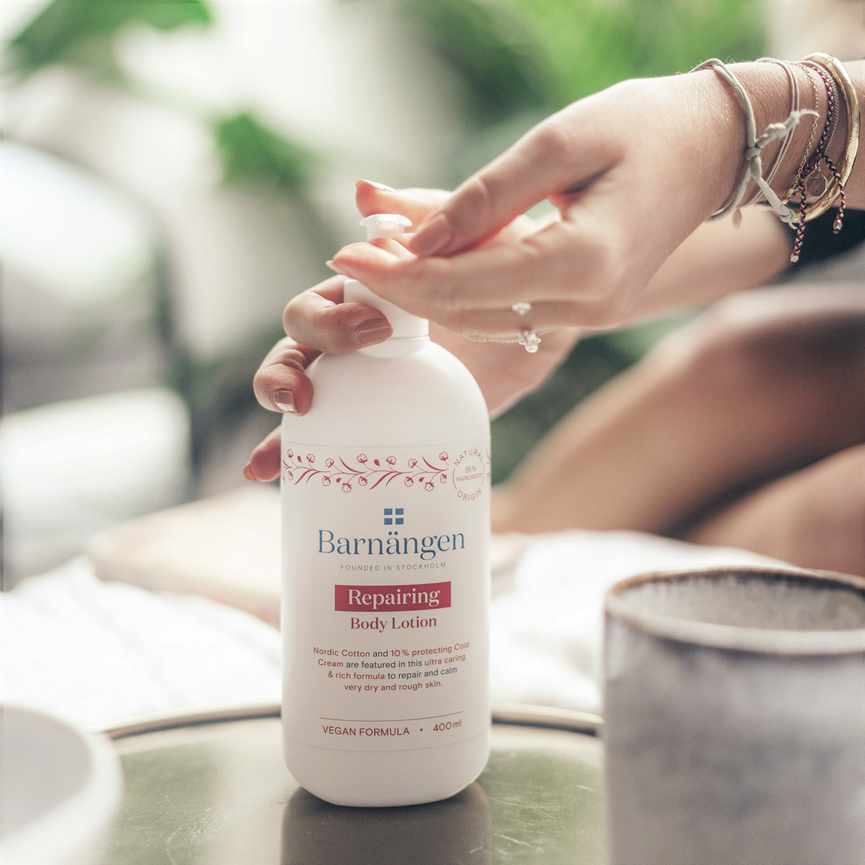 Zažijte Repairing tělové mléko. Severská bavlna a 10% ochranného Cold Cream spojené v této zvláště pečující & bohaté receptuře, která obnovuje a zklidňuje velmi suchou a drsnou pokožku. 95% ingrediencí přírodního původu.* *včetně vody.