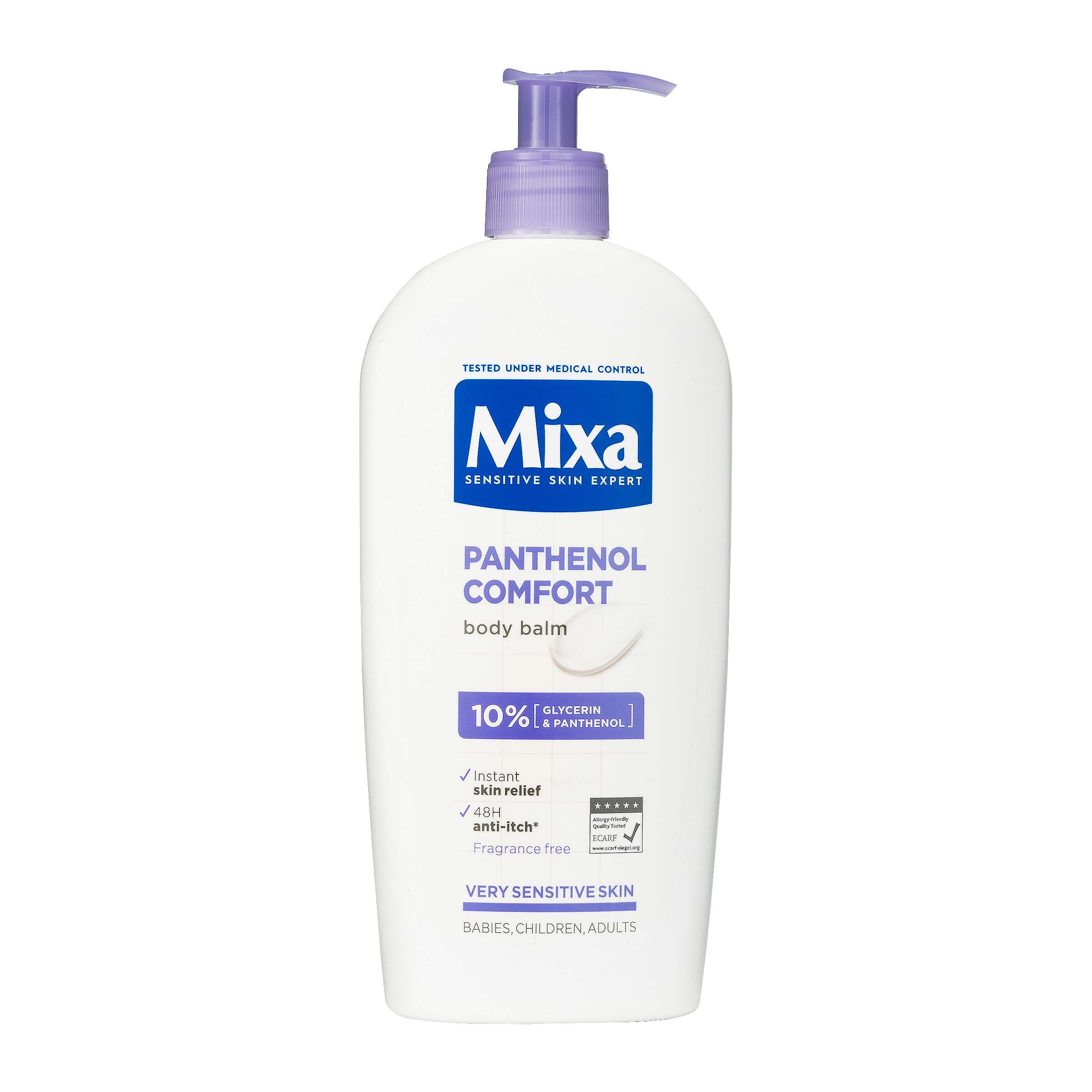 Mixa Panthenol Comfort zklidňující tělové mléko pro velmi citlivou pokožku s tendenci k svědění je obohacené o Panthenol, známý pro své zklidňující účinky a glycerin, známý pro své intenzivní hydratační a ochranné vlastnosti. Tělové mléko Panthenol Comfort je určené pro miminka, děti i dospělé. Tělové mléko je hypoalergenní a bez obsahu parfému. Po použití zklidňujícího tělového mléka je pokožka okamžitě intenzivně vyživená a pocit svědění je potlačen.