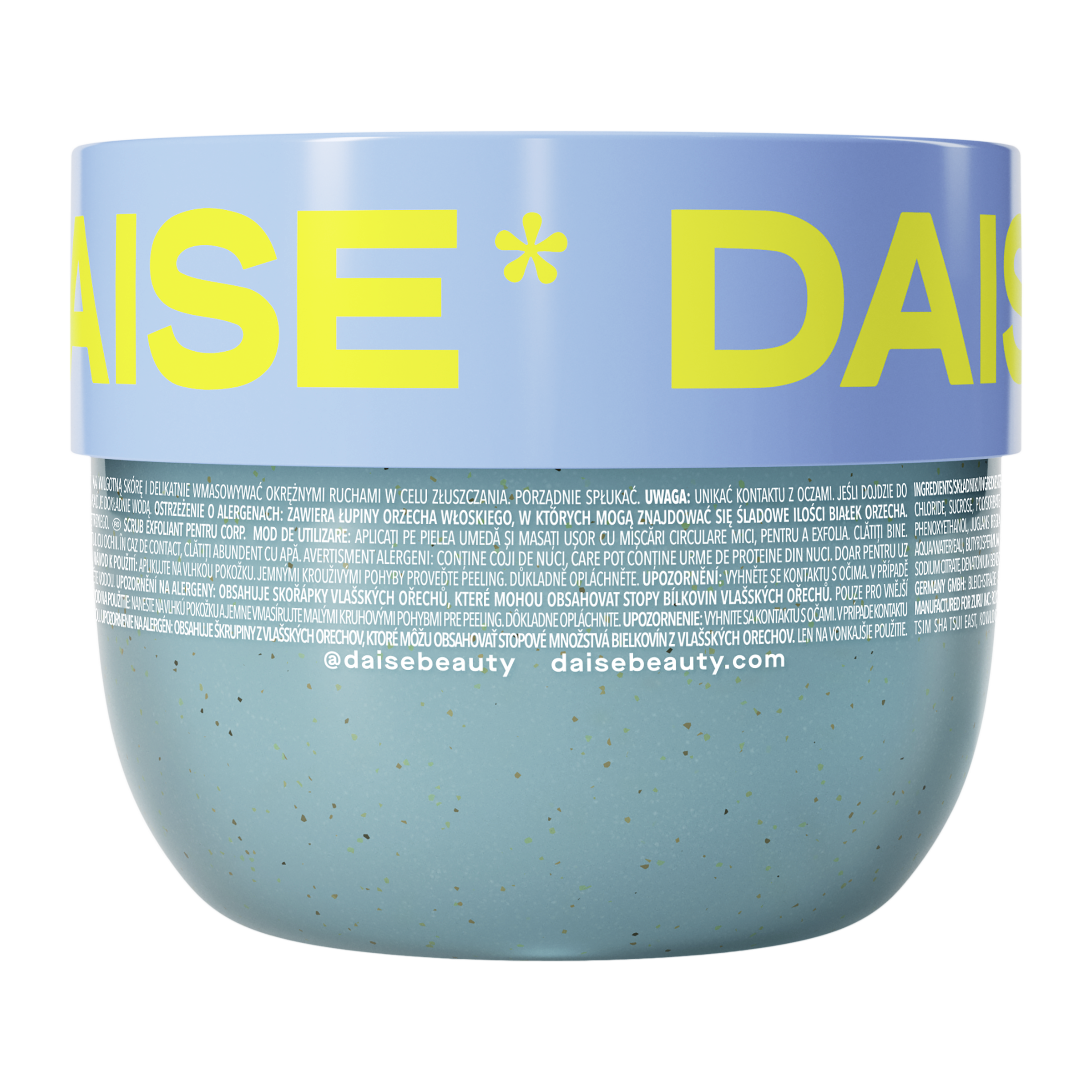 Naneste na vlhkou pokožku a jemně vmasírujte krouživými pohyby pro exfoliaci. Důkladně opláchněte. Pro dokonalou koupelovou nebo sprchovou rutinu použijte v kombinaci s pěnivým sprchovým gelem DAISE.