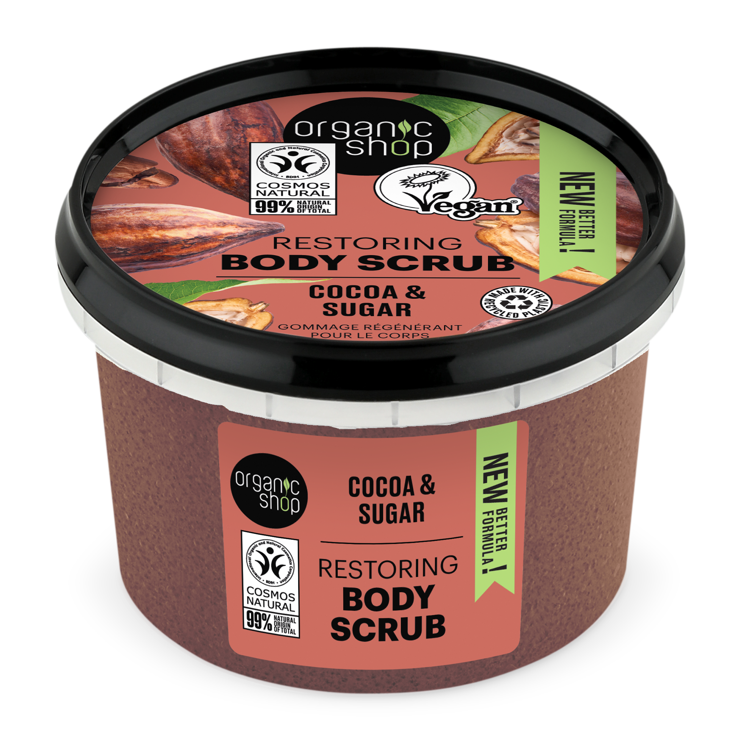 Tento luxusní tělový peeling Cocoa & sugar vyrobený z organického kakaového másla a přírodního cukru okamžitě obnovuje pružnost vaší pokožky, dodá jí úžasnou vláčnost a svůdnou vůni čokolády.