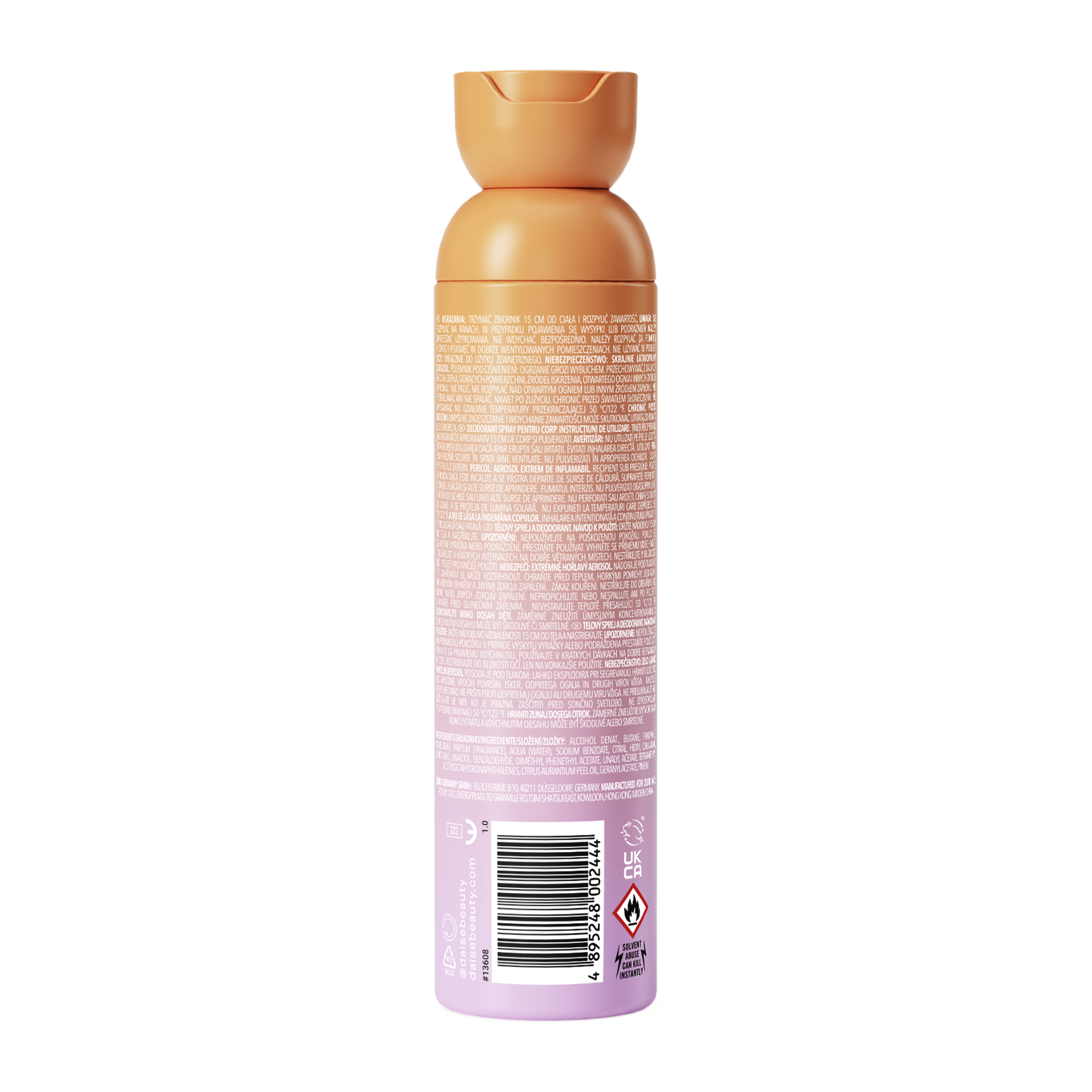 Seznamte se s novým univerzálním tělovým sprejem! Tělový sprej a deodorant DAISE Peachy Daise je navržen tak, abyste se cítili sebevědomě, svěže a roztomile, se svěží vůní lesních plodů a mandarinky, která se hodí kamkoli. Peachy Daise v sobě spojuje mandarinku, lesní plody a jablko s jemnou vanilkou, cedrovým dřevem a nádechem pižma – a vydrží až 24 hodin. Dermatologicky testované s naším Clean Promise složení bez obsahu hliníku je vhodné pro každodenní použití na celé tělo.