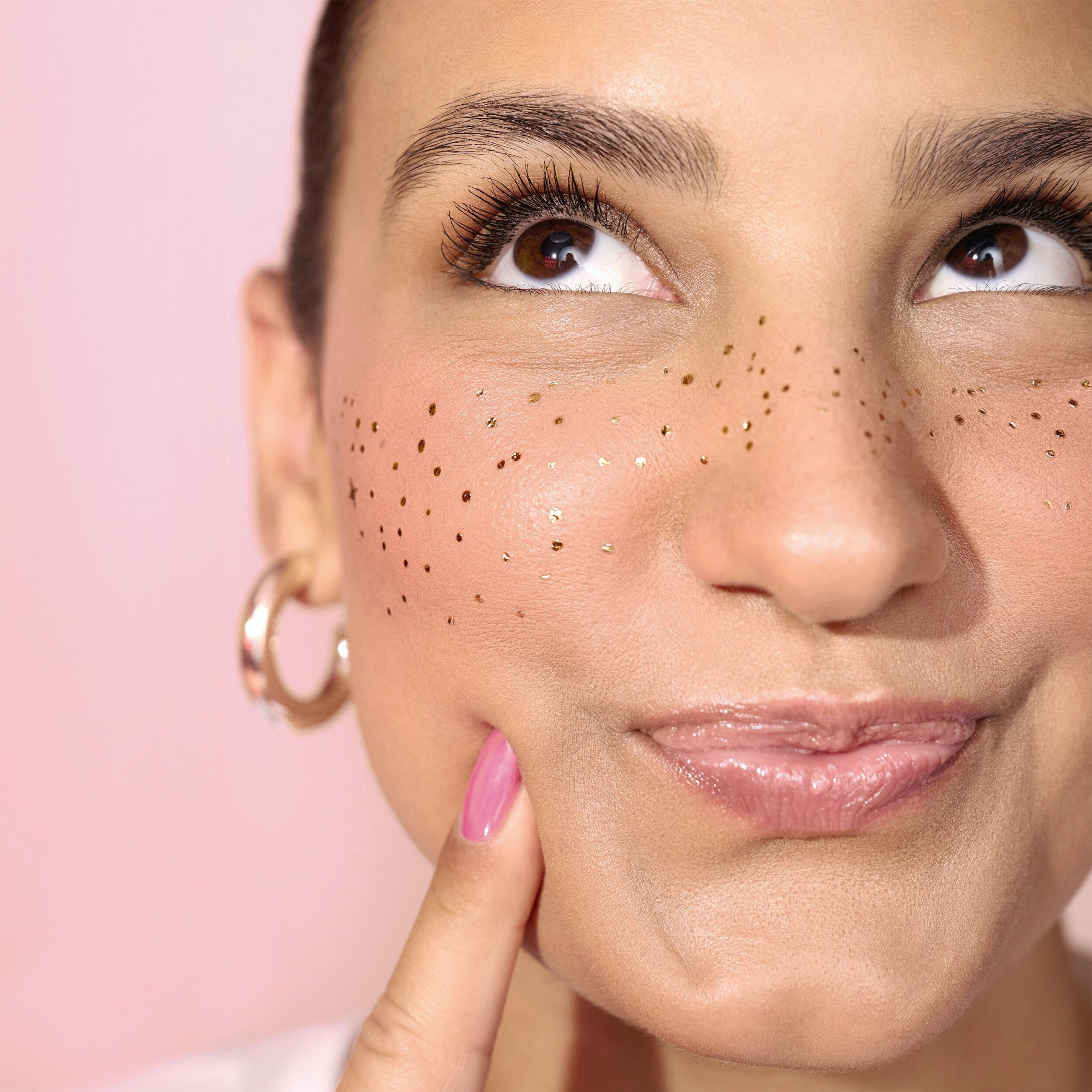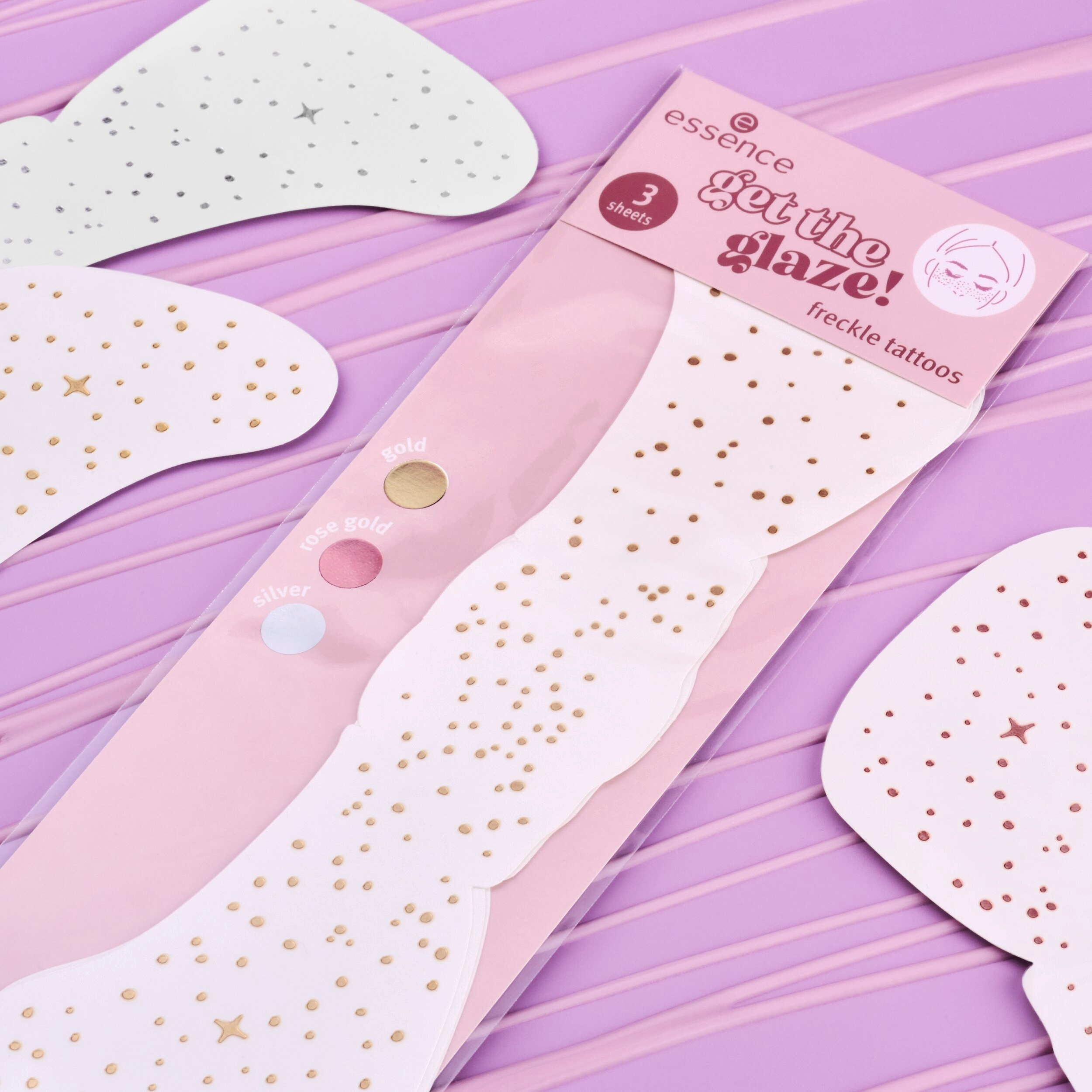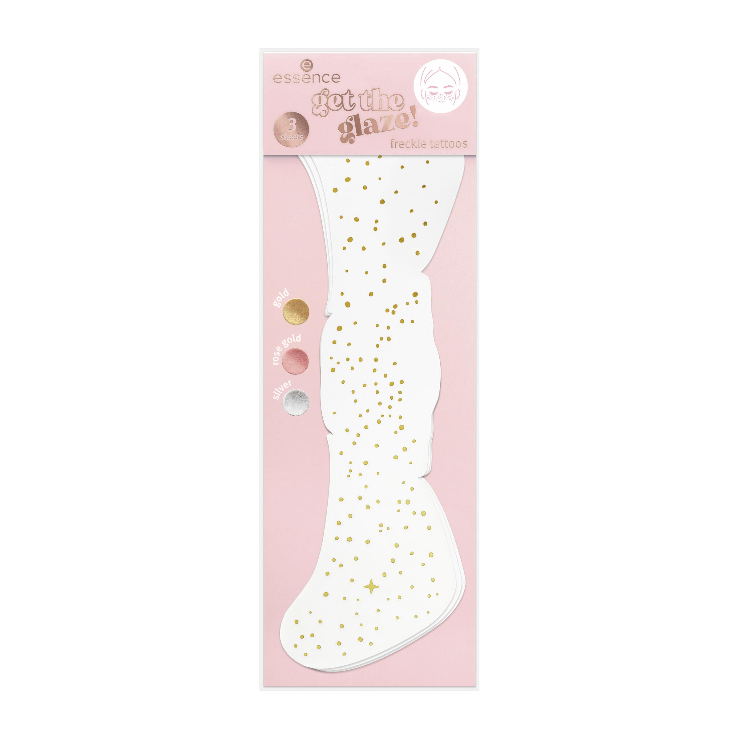 Naneste dotek kouzla na vaše tváře s essence get the glaze! tetování třpytivé pihy 01 Get it Sprinkled! Tři listy tetování odolných vůči rozmazání v barvě růžového zlata, zlata a stříbra dodají vaší tváři hravý a třpytivý lesk během několika sekund. Ať už se vytváříte kreativní každodenní look nebo odvážný festivalový vzhled, tyto dočasné pihy dodají vašemu stylu výrazný a zářivý lesk. Výsledek? Zářivý přirozeně vypadající třpyt, který vydrží. Snadno se nanáší a stejně snadno se odstraňují. Tyto třpytivé pihy vám umožní rozzářit váš obličej – kdykoli a kdekoli.