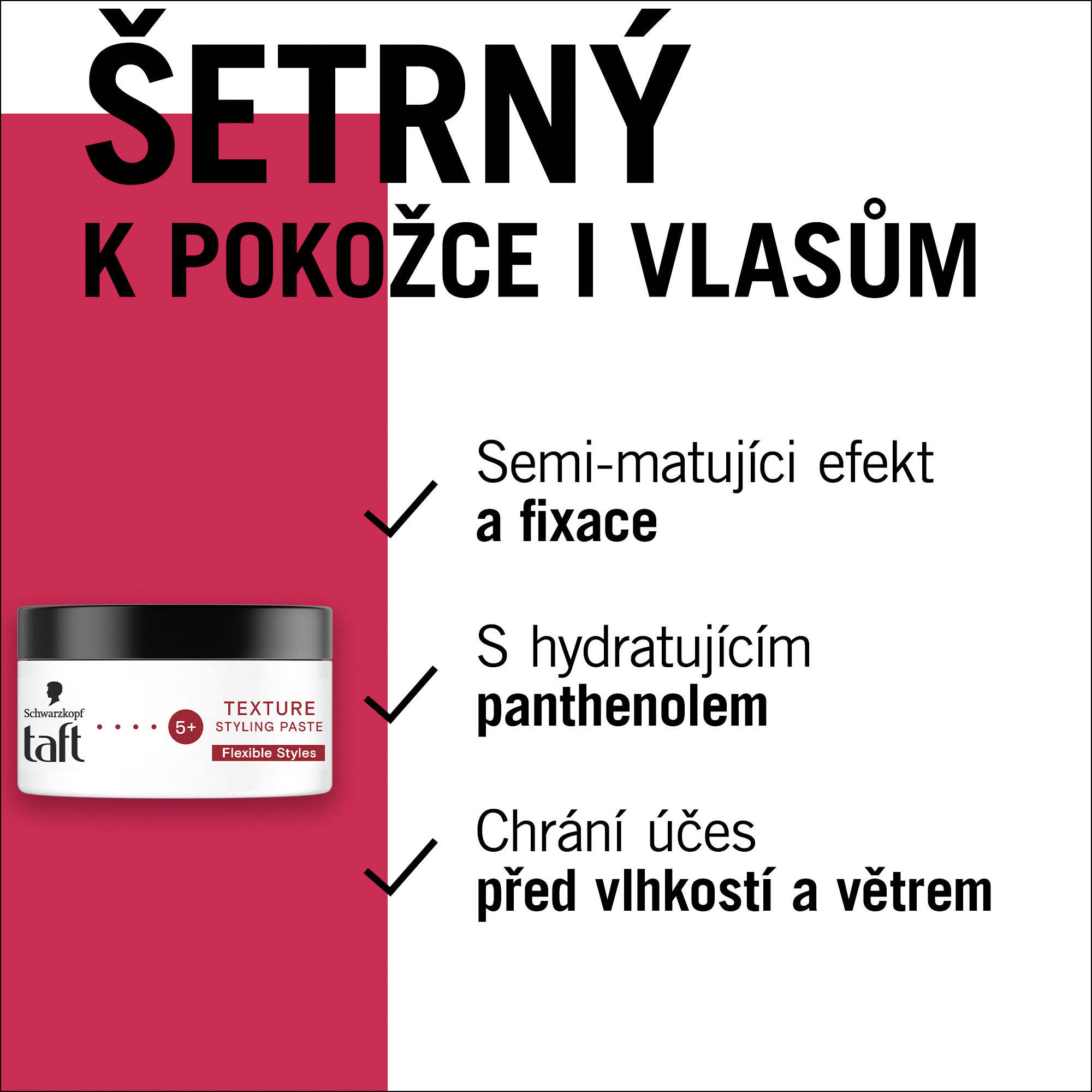 Taft Texture stylingová pasta pro flexibilní účesy. - Polomatný vzhled a dlouhotrvající fixace - S hydratačním panthenolem - Pomáhá chránit váš účes před vlhkostí.