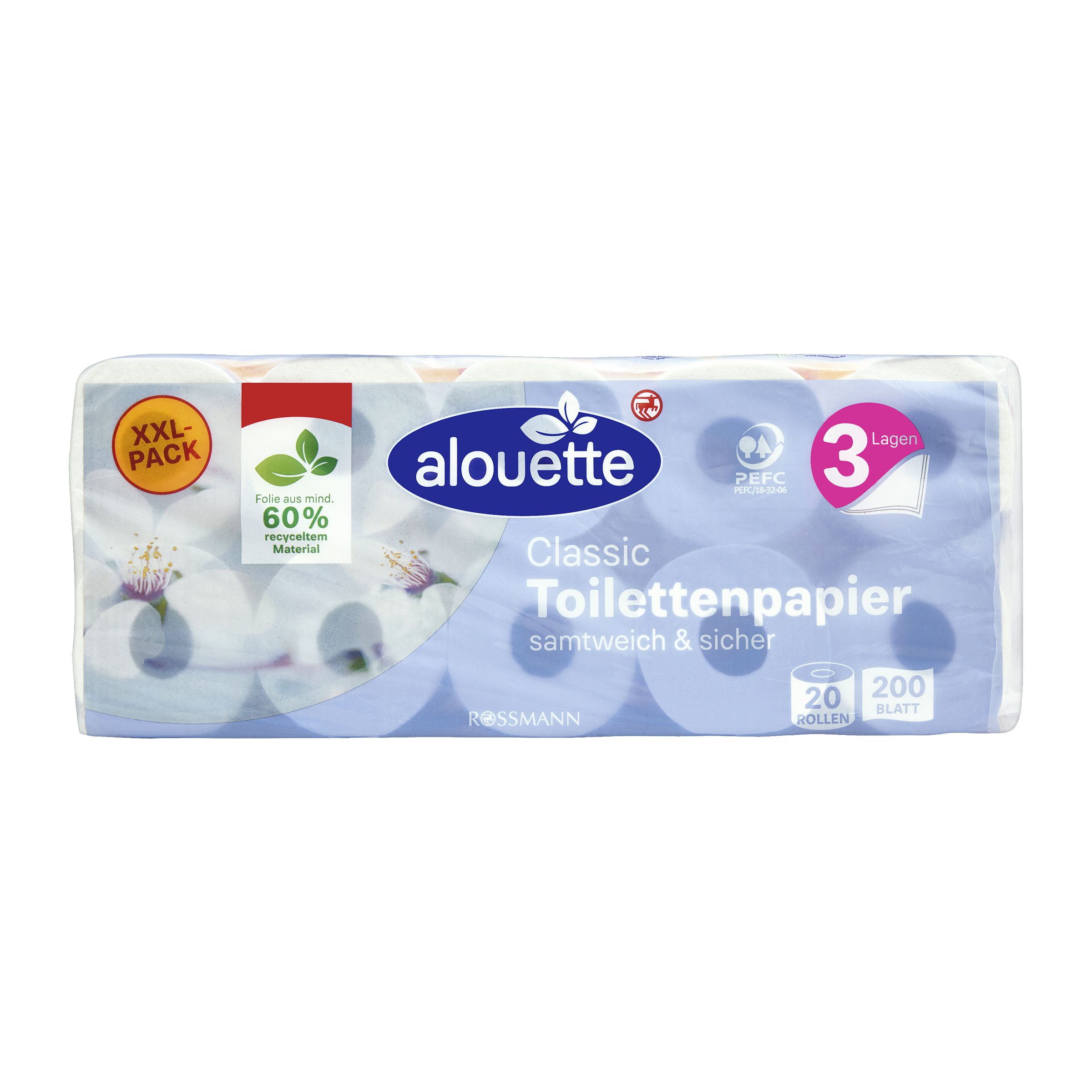 Třívrstvý toaletní papír alouette je díky své textuře měkký a odolný vůči roztržení. Vrstvy drží skvěle pohromadě, a tak je postaráno o nejvyšší bezpečnost a příjemný pocit.