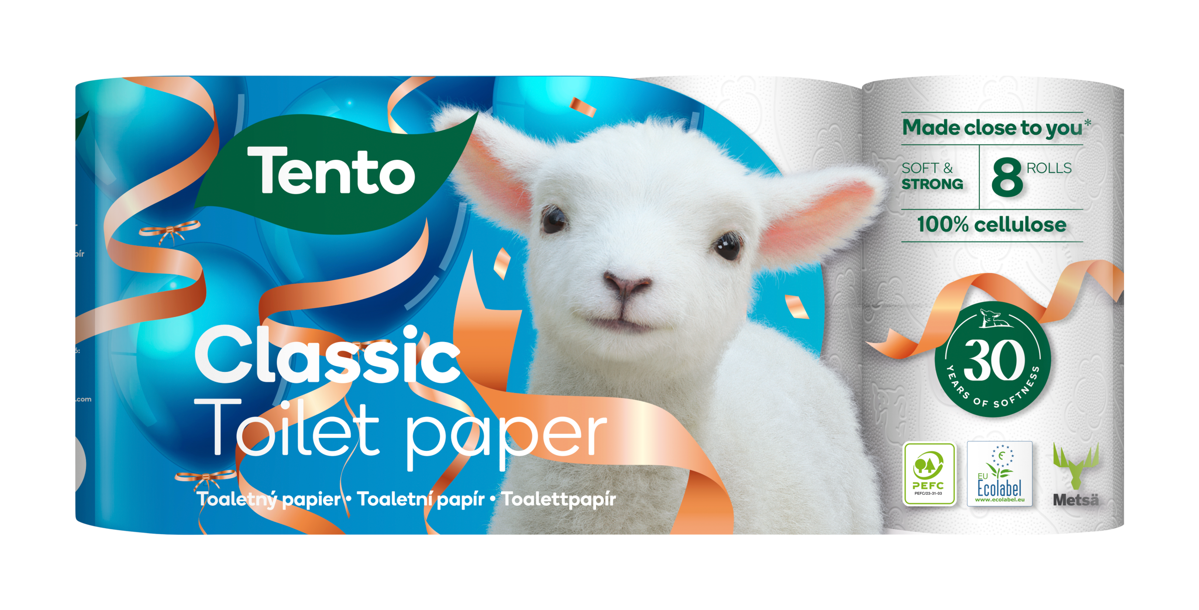 Toaletní papír Tento Classic je vynikající volba pro ty, kteří upřednostňují jednoduchost bez kompromisů. Čistě bílý papír bez přidaných barviv a vůní, nabízí čistý a nekomplikovaný zážitek zaměřený na to, co je nejdůležitější – na pohodlí a kvalitu. Každý útržek přináší dotyk jemnosti, který zpříjemní každodenní chvíle. Jeho 3-vrstvá struktura nabízí pevnost i jemnost se spolehlivým výkonem při každém použití. Ať už si děláte zásoby pro domácnost, nebo jen hledáte produkt, který s jistotou splní vaše každodenní potřeby, Tento Classic zapadne do vašeho života. Produkt je vyroben blízko vám ze 100% celulózy a obdržel certifikáty PEFC a FSC, které zaručují vysoký standard kvality a původ z udržitelně obhospodařovaných lesů. Je to produkt, který přináší spolehlivý výkon a konzistentně jemný pocit – dotyk jemnosti každý den. Tento Classic je dostupný v baleních po 8 a 16 rolích – snadno si tak vyberete to pravé pro svou domácnost. Obalové fólie Tento Classic jsou 100% recyklovatelné a obsahují minimálně 30 % recyklovaného plastu.