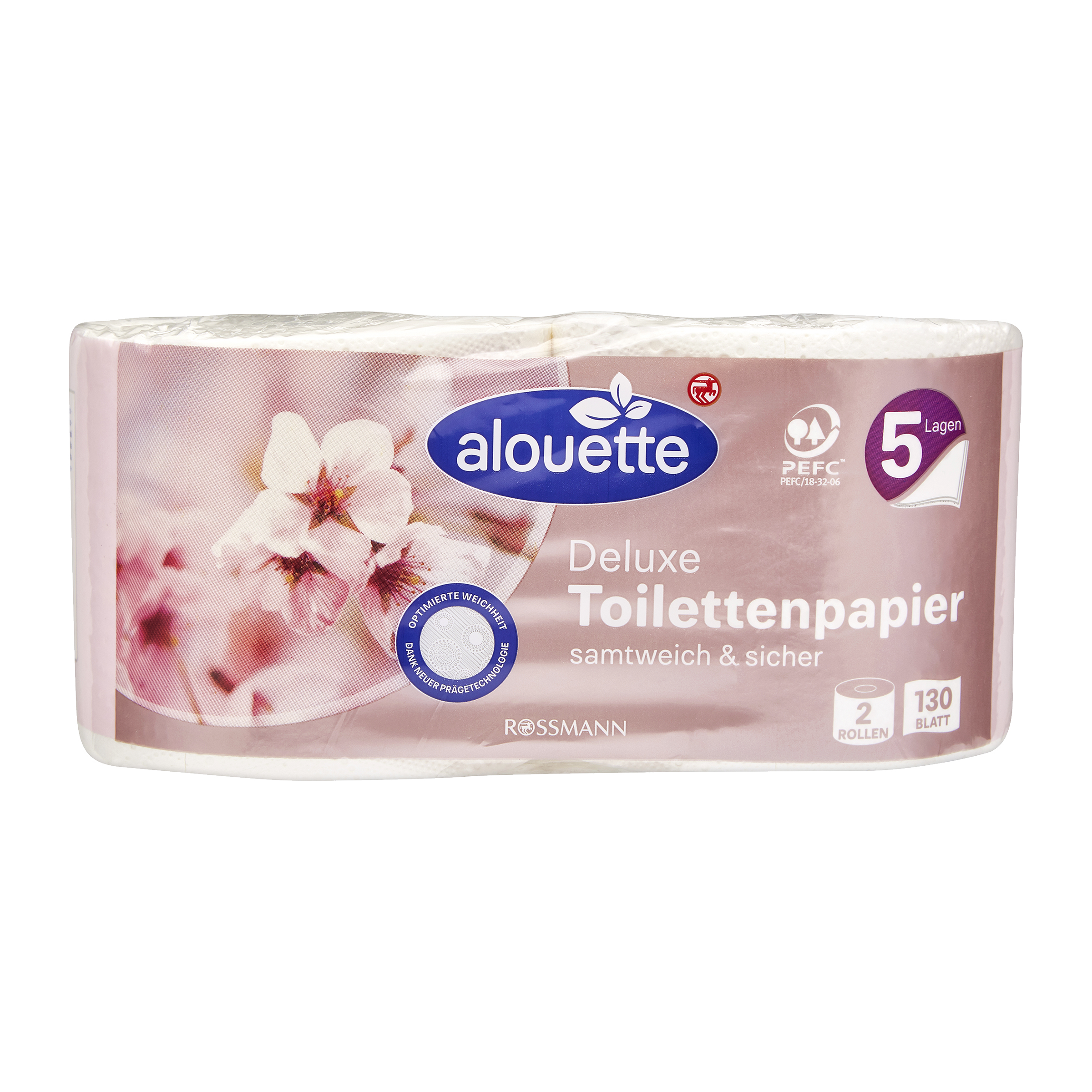 Toaletní papír alouette Deluxe má 5 vrstev a je tak velmi odolný vůči roztržení. Zároveň velmi dobře absorbuje vlhkost a je jemný vůči pokožce.