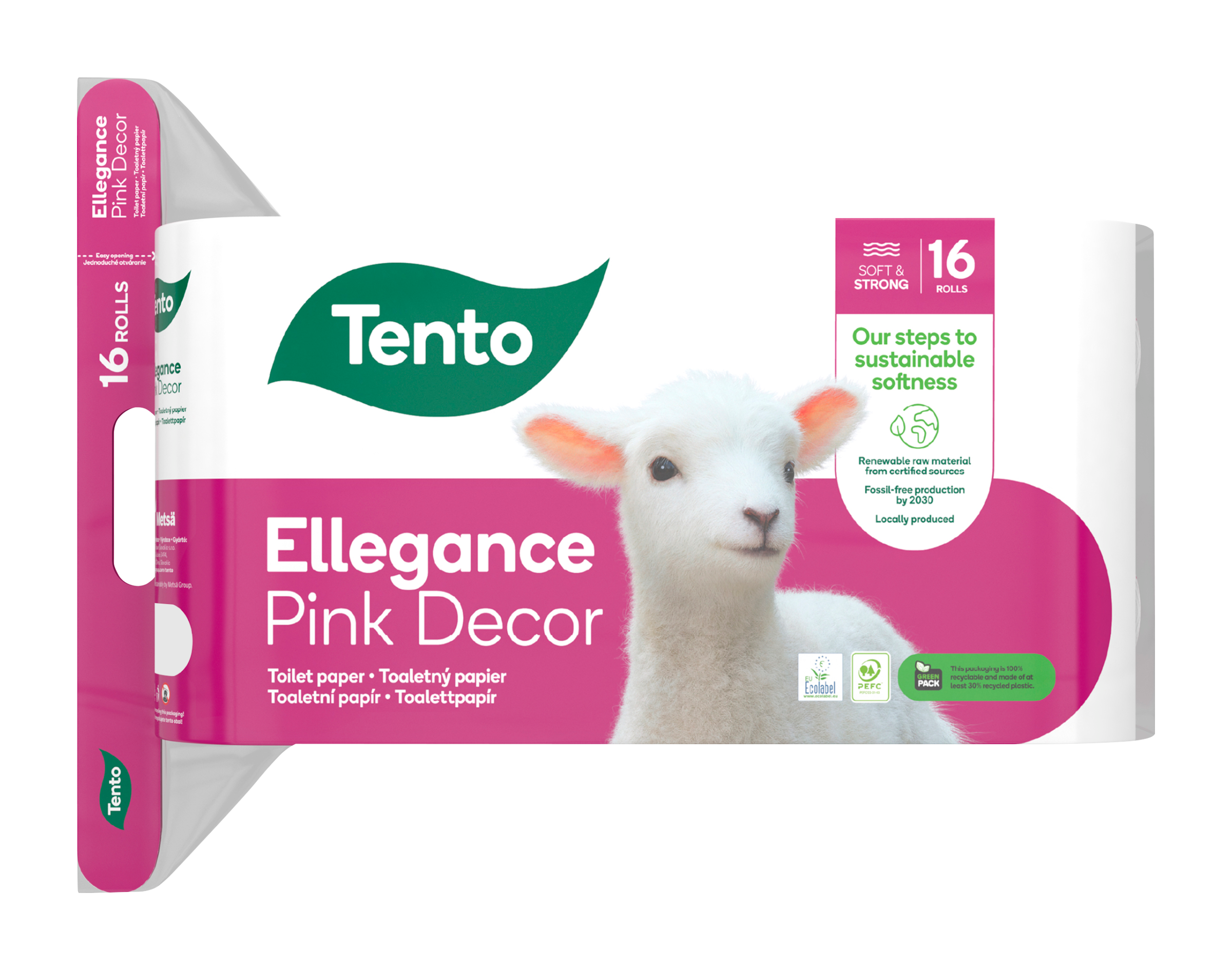 Toaletní papír, výrobek osobní hygieny, 100 % tissue papír. Tento Ellegance Pink Decor toaletní papír 3 vrstvy 16 rolí.