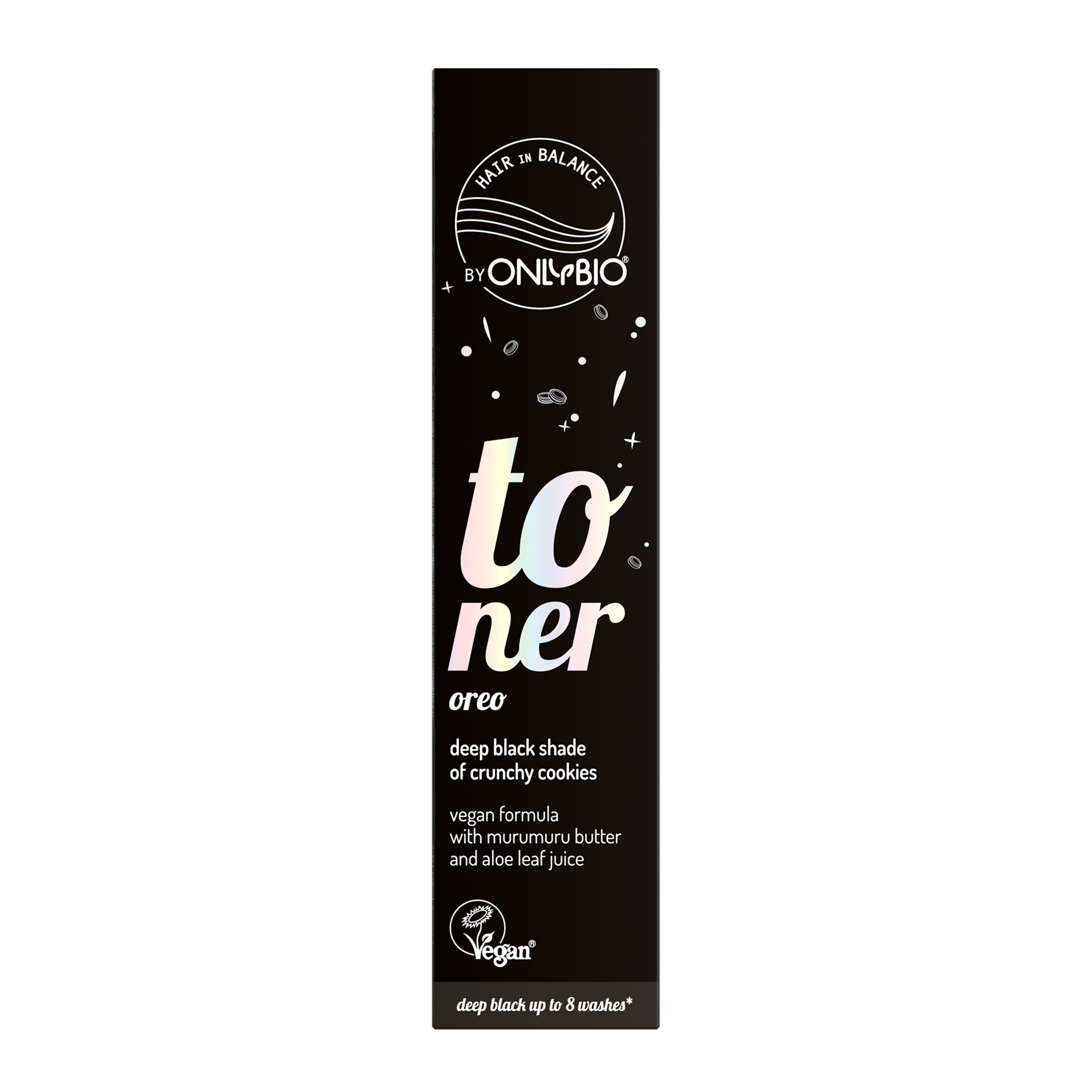 Toner na hnědé vlasy OnlyBio Hair in Balance, který osvěžuje barvu a dodává vlasům intenzivní, černý odstín křehkých sušenek. Unikátní složení tonera obsahuje máslo murumuru, které regeneruje a vyhlazuje vlasy, a šťávu z listů aloe vera, která je hydratuje a zvyšuje jejich pružnost.