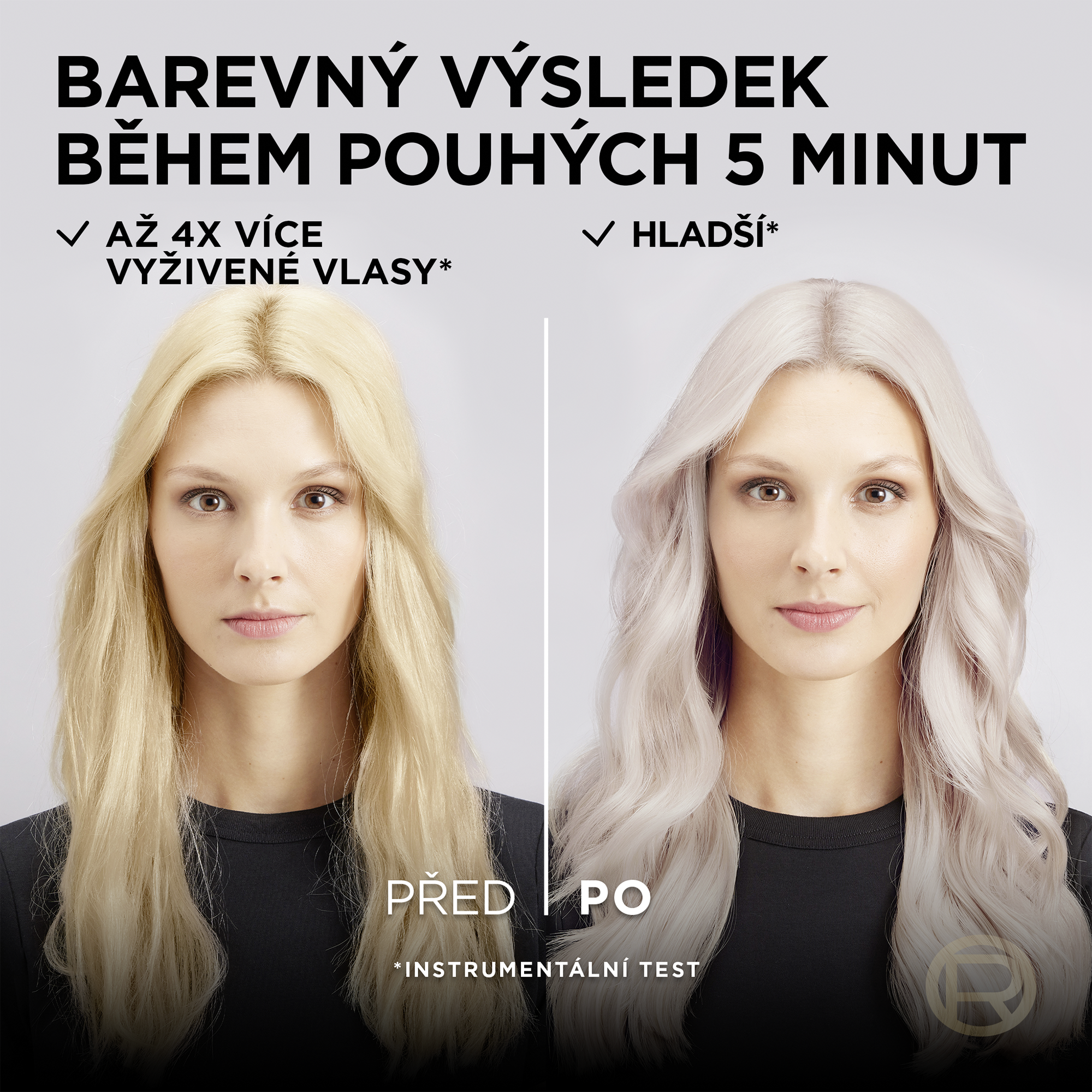 4. Opláchněte a použijte posilující závěrečnou péči. Nechtě působit 2 minuty a opláchněte.