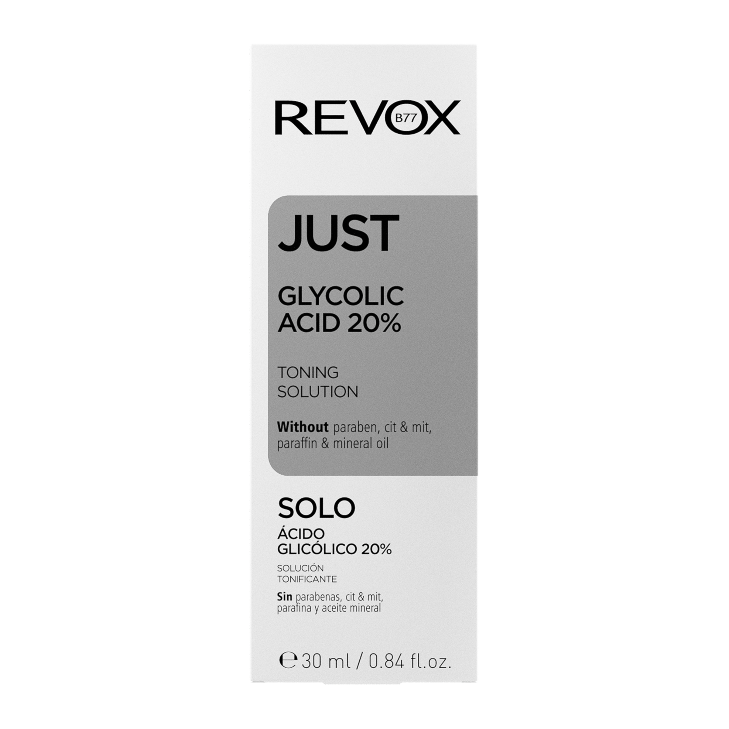 Revox tonizační roztok kyseliny glykolové 20% je tonizační roztok na obličej a krk. Kyselina glykolová je jednou z nejúčinnějších a nejčastěji používaných alfa-hydroxykyselin (AHA). Její molekuly jsou mezi AHAs nejmenší, takže je schopna proniknout do pokožky a lépe se vstřebat. působí tak, že rozbíjí vazby mezi starými kožními buňkami a uvolňuje je, takže je lze exfoliovat. Při pravidelném používání pomáhá urychlit proces obnovy pleti, čímž se na povrch dostává nová svěží pleť, která vypadá mladší a svěží.