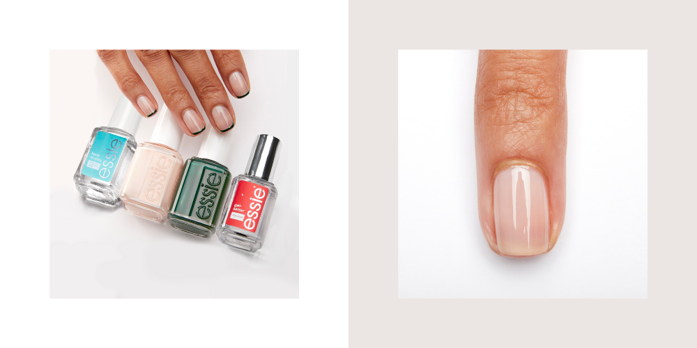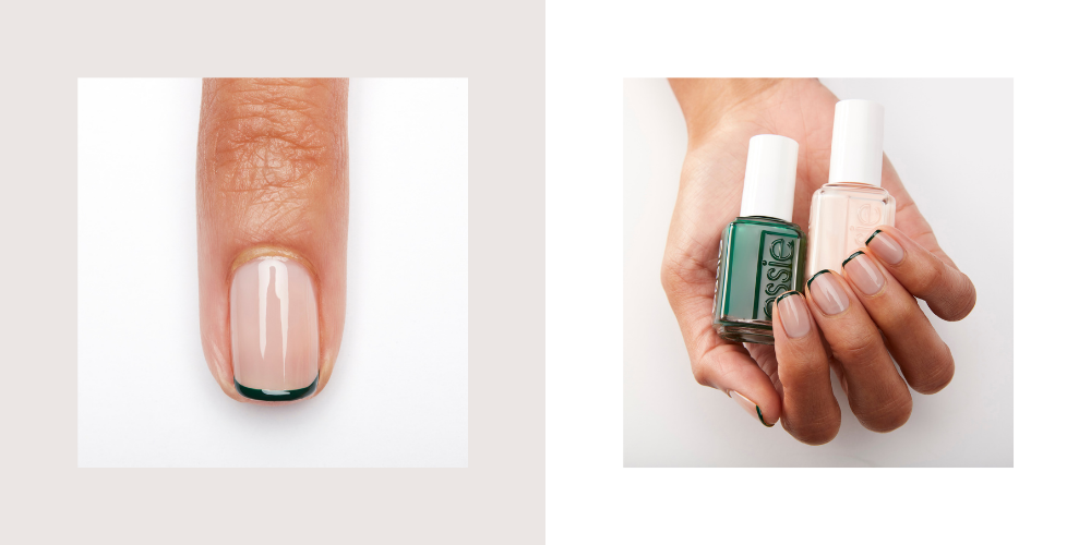 Pokud jde o barvy, tak podzimu i zimě vládne zelená v celé své škále a temně zelený odstín essie off tropic, který je exkluzivně dostupný ve vybraných prodejnách ROSSMANN, je pro letošní konec roku doslova must have. Pokud se ale necítíte na to, mít celé tmavé nehty nebo chcete něco neobvyklé, zkuste si pohrát s nestárnoucí klasikou – tenkou francouzskou manikúrou. Nehty nejprve připravte s podkladovým lakem essie here to stay, která prodlouží výdrž laku na nehty. Poté naneste elegantní, lehce růžový odstín mademoiselle a pro urychlení zaschnutí sáhněte po vrchním laku essie good to go. Poté pomocí tenkého štětečku zvýrazněte špičky nehtů úzkou linkou právě zeleným odstínem essie off tropic. Pro delší výdrž sáhněte klidně znovu po vrchním laku a naneste ho i na hrany nehtů, aby se barva neodlupovala.