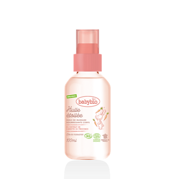 Olejíček má hedvábnou nemastnou strukturu, která pokožku vyživuje a hydratuje. 100 % obsažených složek je přírodního původu, perfektní pro citlivou pokožku. Díky praktickému balení ve spreji se dobře nanáší a nechává na kůži jemný závoj. Masáží miminko uklidníte a připravíte ho na spánek. Tomu pomůže také jemná přírodní vůně, vyvinutá speciálně pro miminka v oblasti Grasse.