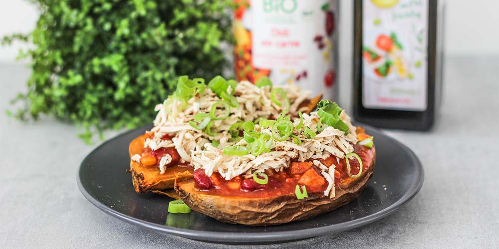 Recept od Viki - Plněná batáta s chilli sin carne a strouhaným uzeným tofu