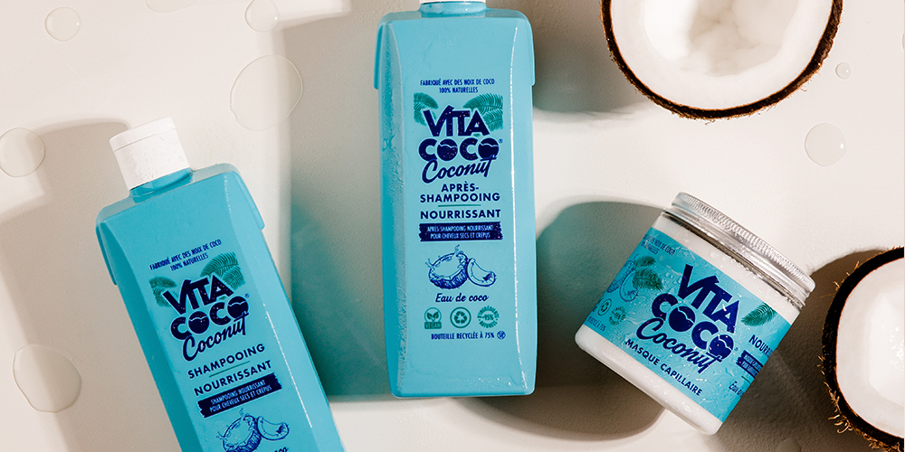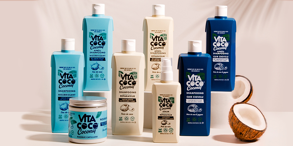 Vlasová péče Vita Coco má 3 řady, které jsou určeny pro různé typy vlasů: tmavě modrá Scalp pro citlivou pokožku a problémy s lupy, světle modrá Nourish pro suché a krepaté vlasy a béžová Repair pro poškozené vlasy.