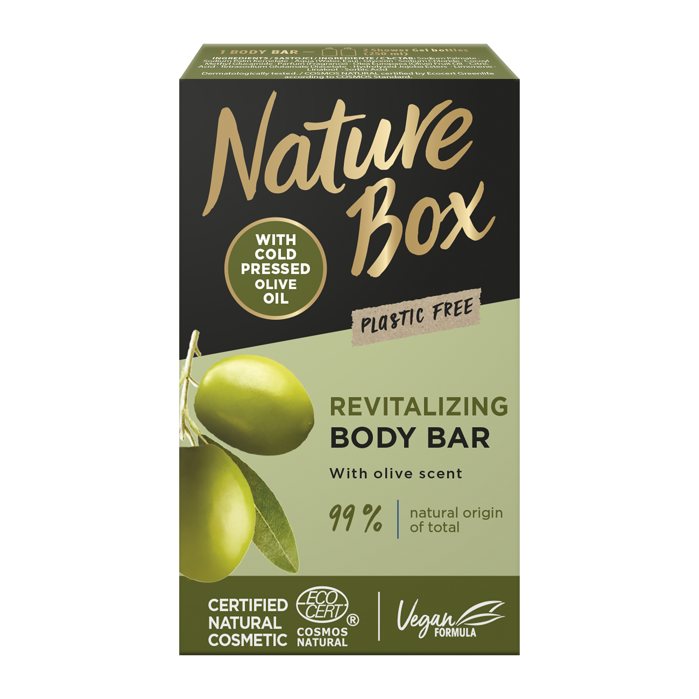 Vyzkoušejte nový způsob sprchování s tímto olivovým tuhým sprchovým mýdlem, které obsahuje 99 % ingrediencí přírodního původu. Mýdlo je dermatologicky testováno, dodává vaší pokožce péči a zahalí Vás do příjemné olivové vůně, kterou si zamilujete. Je vyrobeno ze 100% olivového oleje lisovaného za studena, bohatého na důležité vitaminy a antioxidanty, díky kterému bude Vaše pokožka vyživená a zregenerovaná.