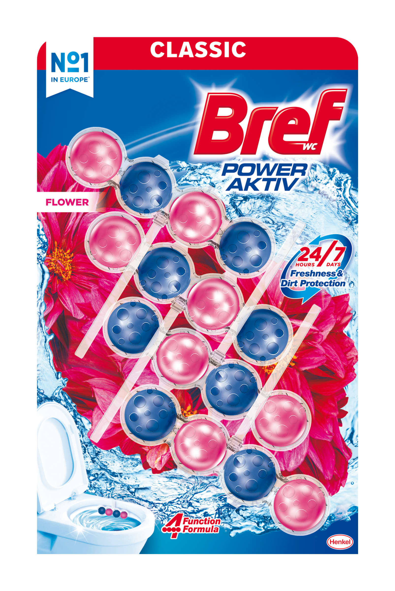 Bref Power Aktiv WC blok s vůní květů a o + 50 % vyšším účinkem proti vodnímu kameni* Hledáte jednodušší způsob, jak udržet vaši toaletu čistou a svěží? Bref WC blok je jednoduchým a pohodlným způsobem, který zajišťuje čistotu a svěžest ve vaší toaletě od prvního do posledního spláchnutí. Bref Power Aktiv WC blok s o + 50 % vyšším účinkem proti vodnímu kameni má složení se 4 funkcemi: