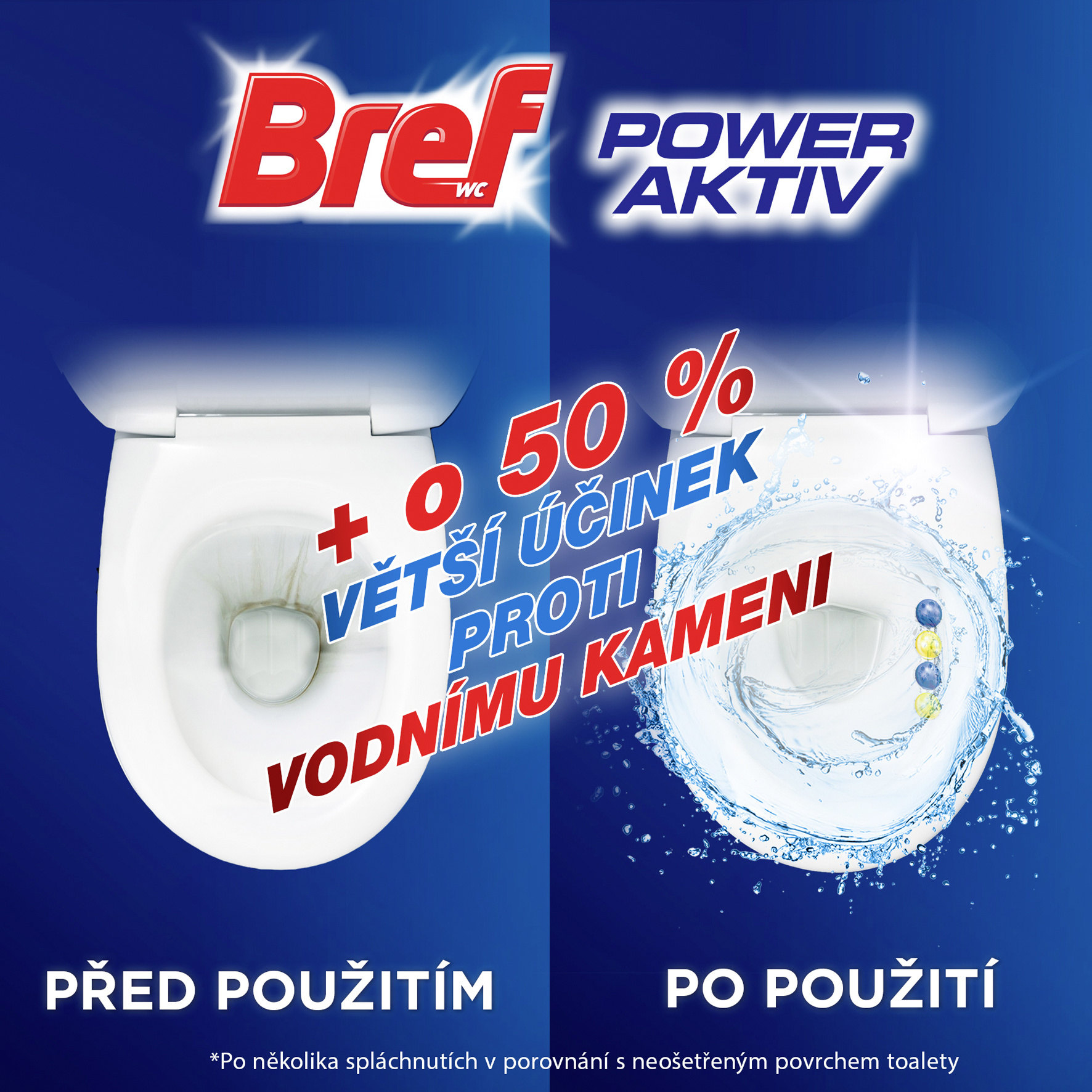 Bref Power Aktiv WC blok s vůní oceánu a o + 50 % vyšším účinkem proti vodnímu kameni* Hledáte jednodušší způsob, jak udržet vaši toaletu čistou a svěží? Bref WC blok je jednoduchým a pohodlným způsobem, který zajišťuje čistotu a svěžest ve vaší toaletě od prvního do posledního spláchnutí. Bref Power Aktiv WC blok s o + 50 % vyšším účinkem proti vodnímu kameni má složení se 4 funkcemi: