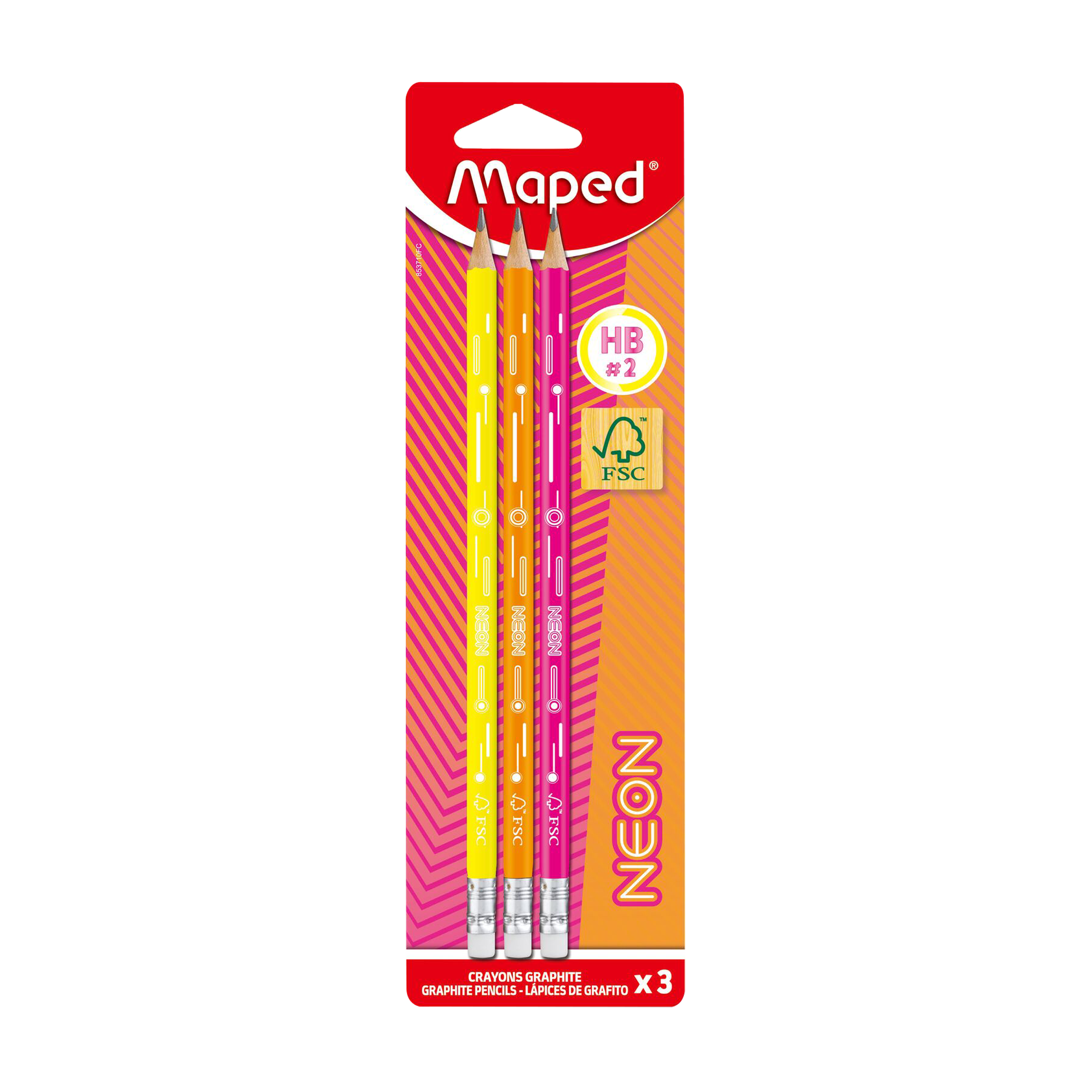 Dřevěná grafitová tužka v neonových barvách má ergonomické trojhranné tělo a vysoce kvalitní tuhu o tvrdosti HB (č. 2, středně měkká). Vyrobena ze 100% certifikovaného FSC dřeva. Balení obsahuje 3 kusy.