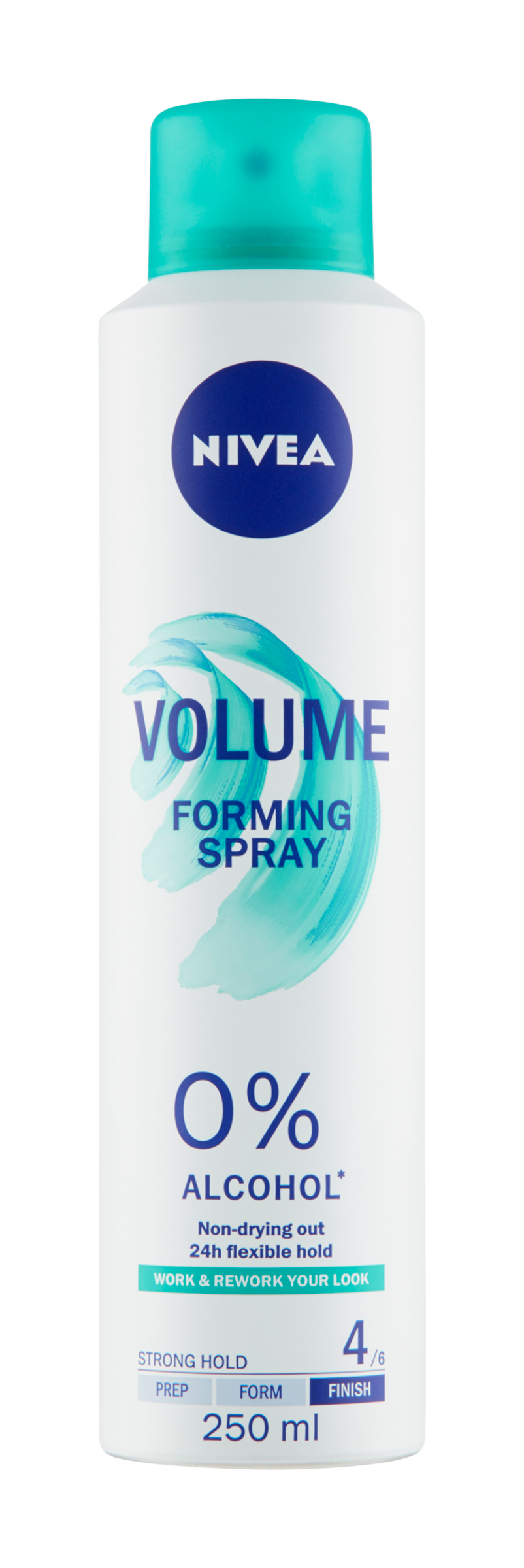 Snadno a rychle vytvarujte váš vysněný objem! Objevte Nivea® Tvarovací sprej na vlasy Volume. Inovativní složení s 0 % alkoholu*, lehkým suchým olejem a Euceritem®: Prodlužuje 2násobně** dobu schnutí a díky tomu umožňuje snadnější úpravu účesu. Nevysušuje.
