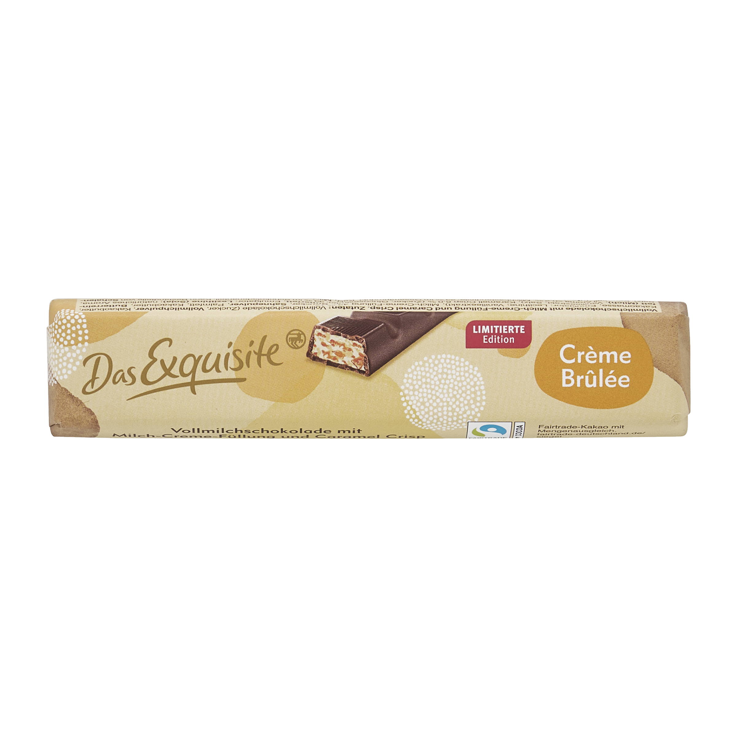 Mléčná čokoládová tyčinka s mléčnou krémovou náplní a karamelovými křupinkami.