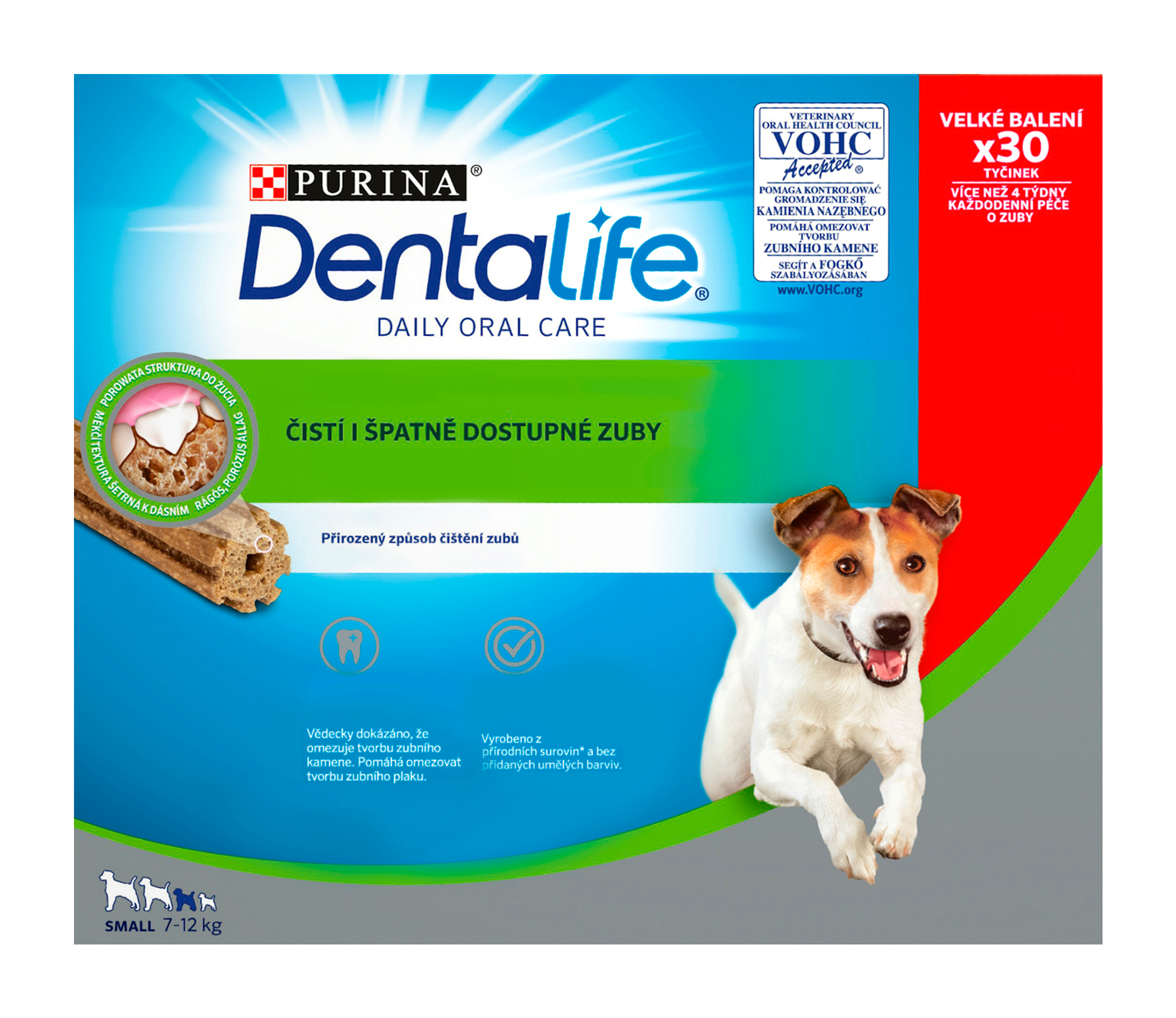 Každodenní péče o ústní dutinu. Celková péče o ústní dutinu psa pozitivně přispívá k jeho celkovému zdraví. Odborníci ze společnosti Purina® vyvinuli DentaLife®, inovativní žvýkací pochoutku, u níž je vědecky dokázáno, že pomáhá hloubkově vyčistit i špatně dostupné zadní zuby, které jsou nejvíce ohroženy zubním kamenem a plakem. Purina® DentaLife® je navržený pro každodenní použití a je velmi šetrný k dásním psa. Použití každý den znamená více času věnovanému čištění zubů. Měkčí textura šetrná k dásním. Čistí i špatně dostupné zuby. Pomáhá omezovat tvorbu zubního plaku. Vyrobeno z přírodních surovin a bez přidaných umělých barviv.