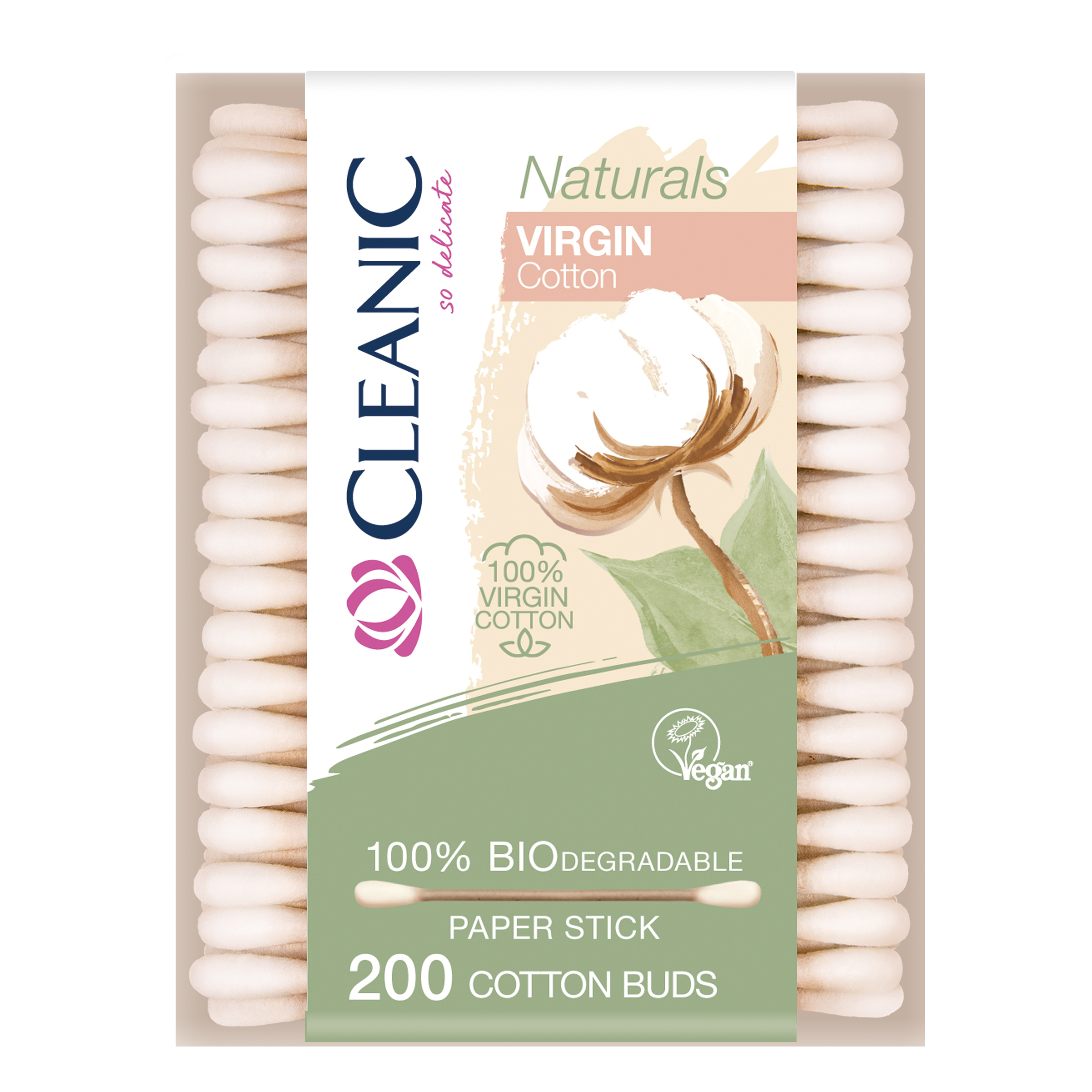 Tyčinky na čištění uší. Vyrobeno ze 100% bavlny.
