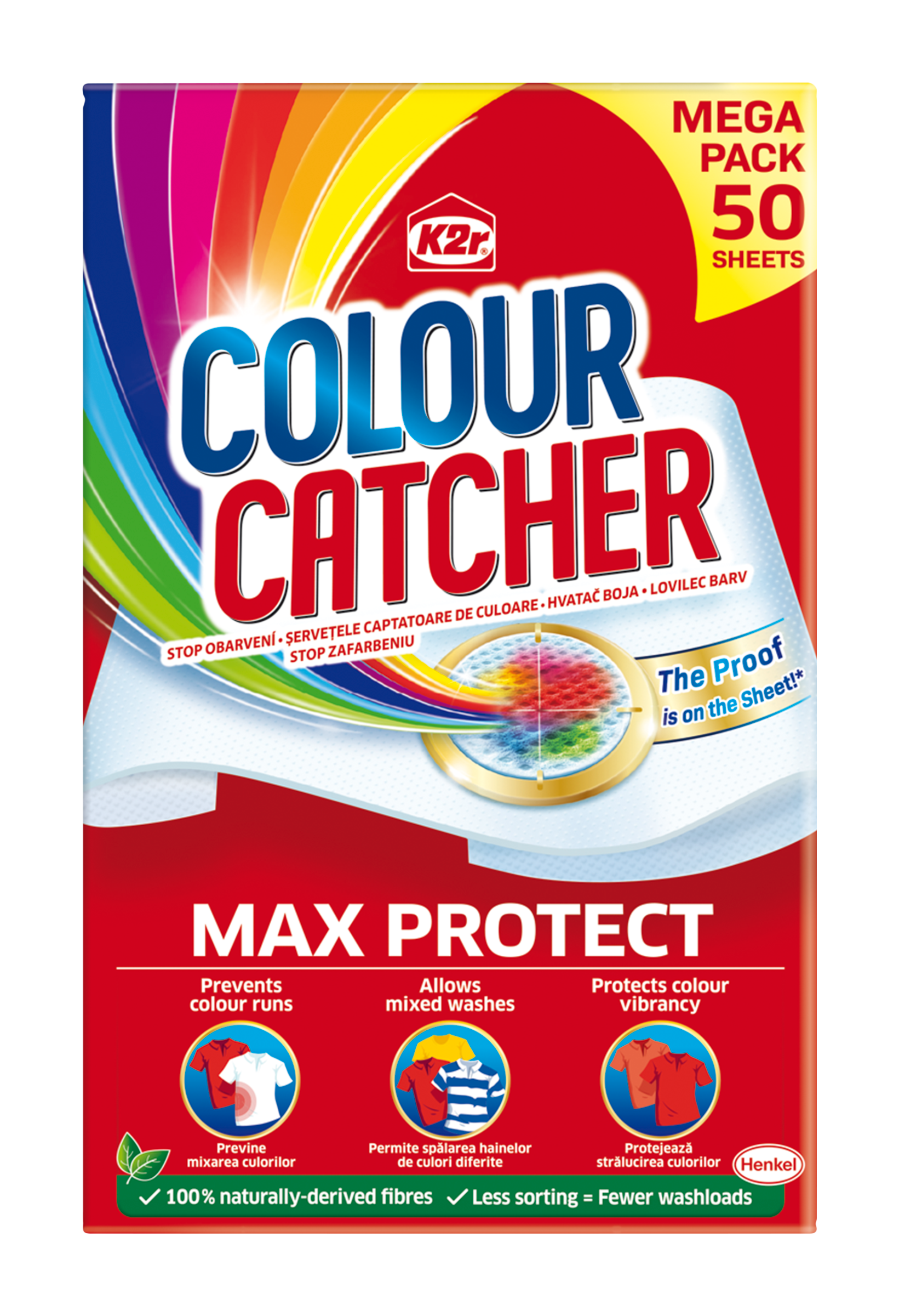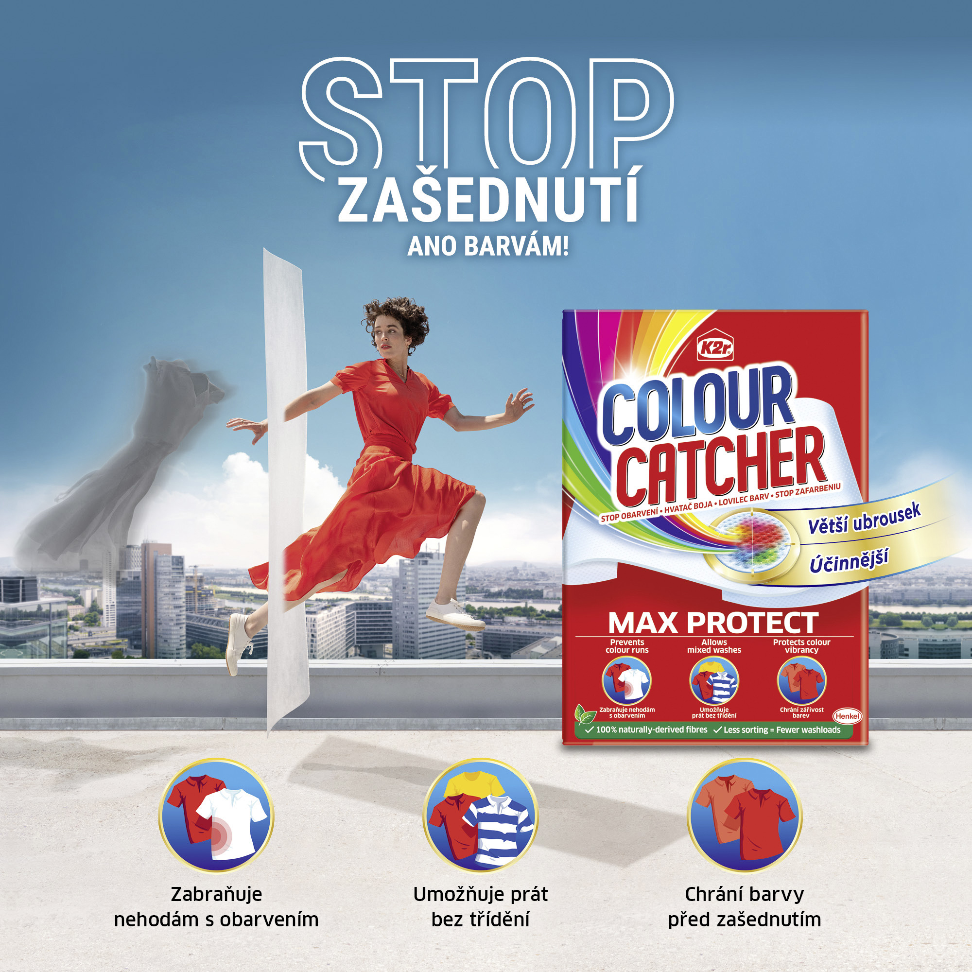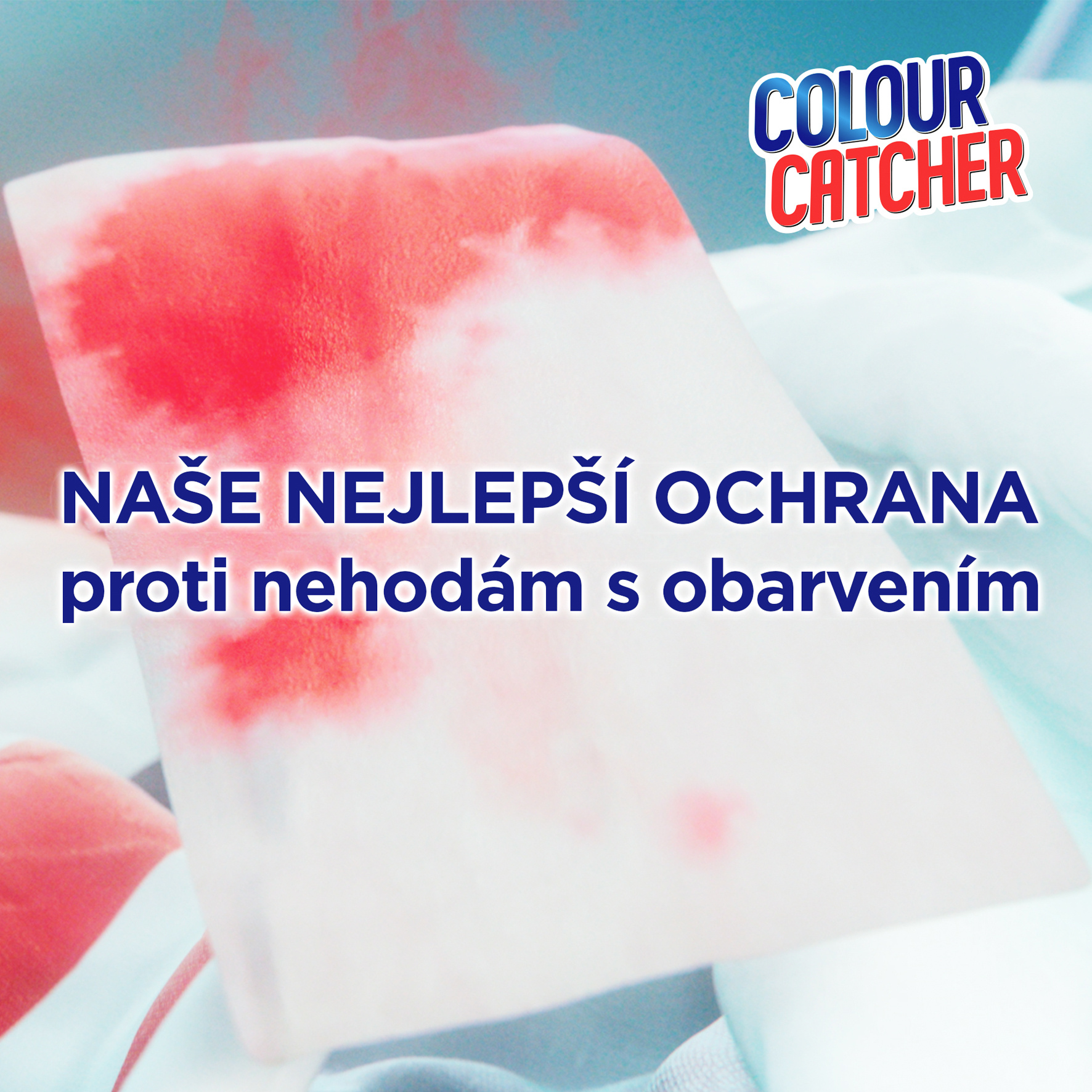 Colour Catcher Max Protect - Maximální ochrana oblečení proti nehodám s obarvením způsobem šetrným k životnímu prostředí. Colour Catcher Max Protect jsou prací ubrousky s patentovanou technologií, která zabraňuje nežádoucímu obarvení prádla, udržuje vaše oblečení stále zářivé a je navíc šetrná k životnímu prostředí. Naše nová generace Colour Catcher přichází nově s větší velikostí ubrousků a ještě lepším výkonem. Ubrousky jsou vyrobeny ze 100 % přírodních vláken* a jsou obohaceny speciálními složkami, které se chovají jako magnet, který během pracího cyklu ve vodě zachytí uvolněné částečky barev a špíny. Důkaz je na ubrousku! Díky ubrouskům Colour Catcher můžete prát různě barevné prádlo dohromady i bez předchozího třídění. Ubrousky vám tak šetří čas, vodu i energii.