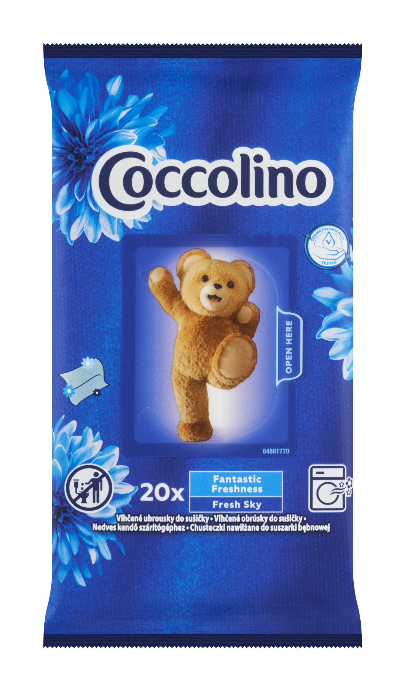 Coccolino vlhčené vonné ubrousky do sušičky dodají vašemu prádlu ještě intenzivnější vůni a svěžest. Pro maximální intenzitu vůně a měkkost prádla použijte v kombinaci s aviváží Coccolino.