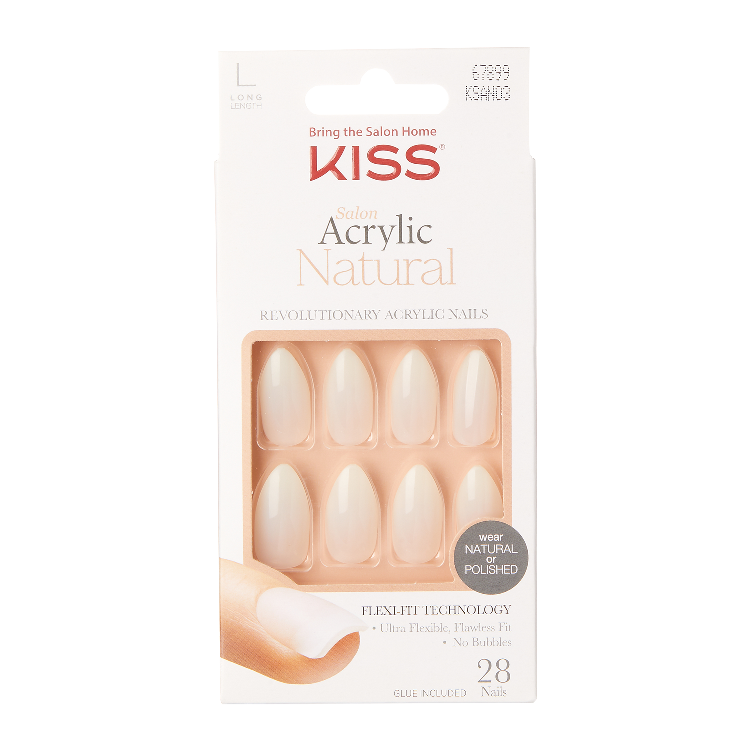 Perfektní přirozeně vypadající nahé nehty s akrylovými nahými francouzskými nehty KISS Salon. Už žádné pruhy, linky nebo nerovné kabáty, s pohodlím doma a bez jakýchkoli nevýhod v salonní akrylové manikúry. Díky snadné aplikaci lepením; k dispozici v krátké i střední délce.