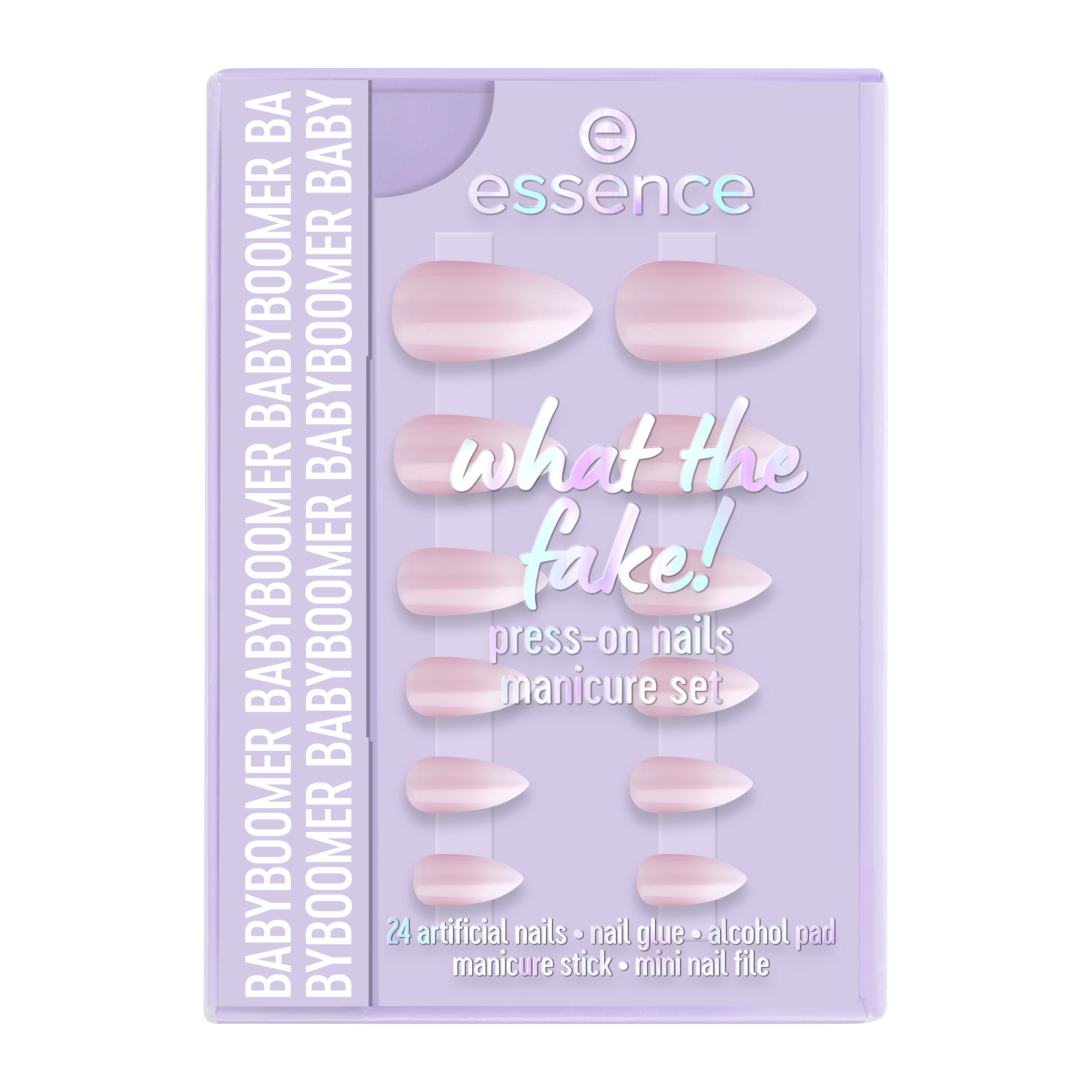Hotové nehty během několika minut díky essence what the fake! sadě s umělými nehty PRESS-ON 03 BABYBOOMER. Tato sada obsahuje 24 vysoce kvalitních umělých nehtů ve 12 různých velikostech v mandlovém tvaru v krásném klasickém odstínu baby boomer v jemné růžové základní barvě. Díky svému preciznímu tvaru a kvalitě se nehty dokonale přizpůsobí vašim přirozeným nehtům – pro vzhled jako ze salonu u vás doma. Sada obsahuje také lepidlo na nehty, tyčinku na manikúru, mini pilník na nehty a čisticí ubrousek na nehty – vše, co potřebujete pro snadnou aplikaci dlouhotrvající manikúry. Snadná aplikace a výsledek, který si zamilujete!