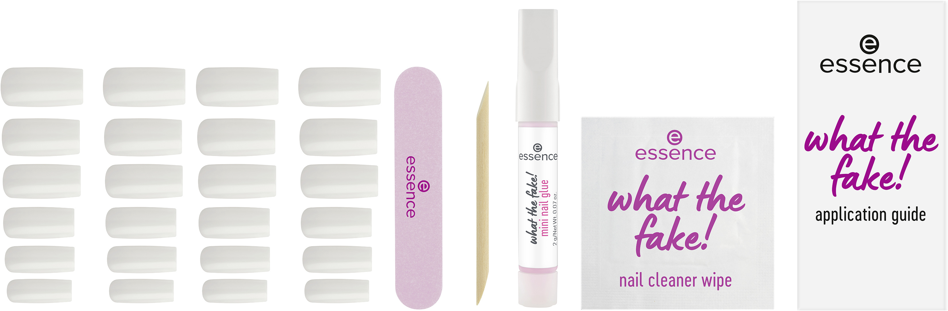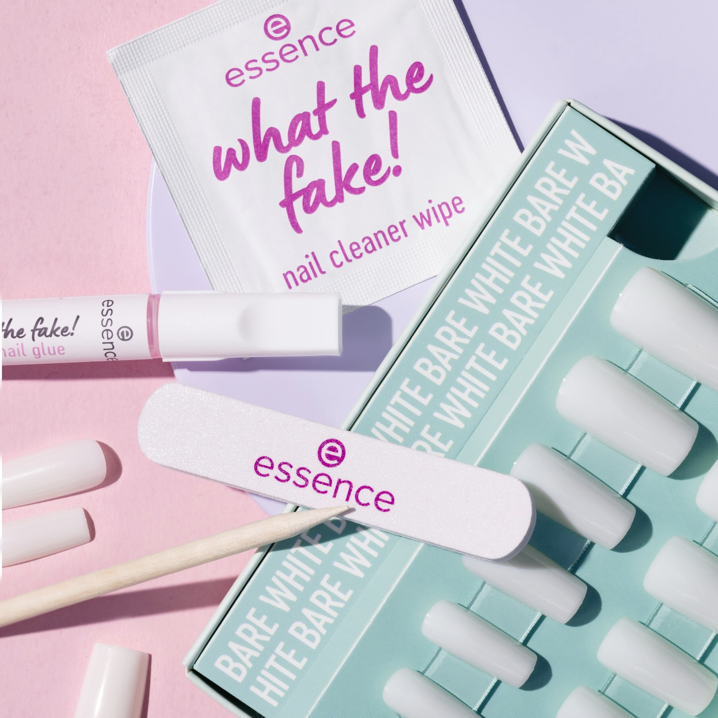 Hotové nehty během několika minut díky essence what the fake! sadě s umělými nehty PRESS-ON 04 BARE WHITE. Tato sada obsahuje 24 vysoce kvalitních umělých nehtů ve 12 různých velikostech v hranatém tvaru v základním bílém odstínu. Díky svému preciznímu tvaru a kvalitě se nehty dokonale přizpůsobí vašim přirozeným nehtům – pro vzhled jako ze salonu u vás doma. Sada obsahuje také lepidlo na nehty, tyčinku na manikúru, mini pilník na nehty a čisticí ubrousek na nehty – vše, co potřebujete pro snadnou aplikaci dlouhotrvající manikúry. Snadná aplikace a výsledek, který si zamilujete!