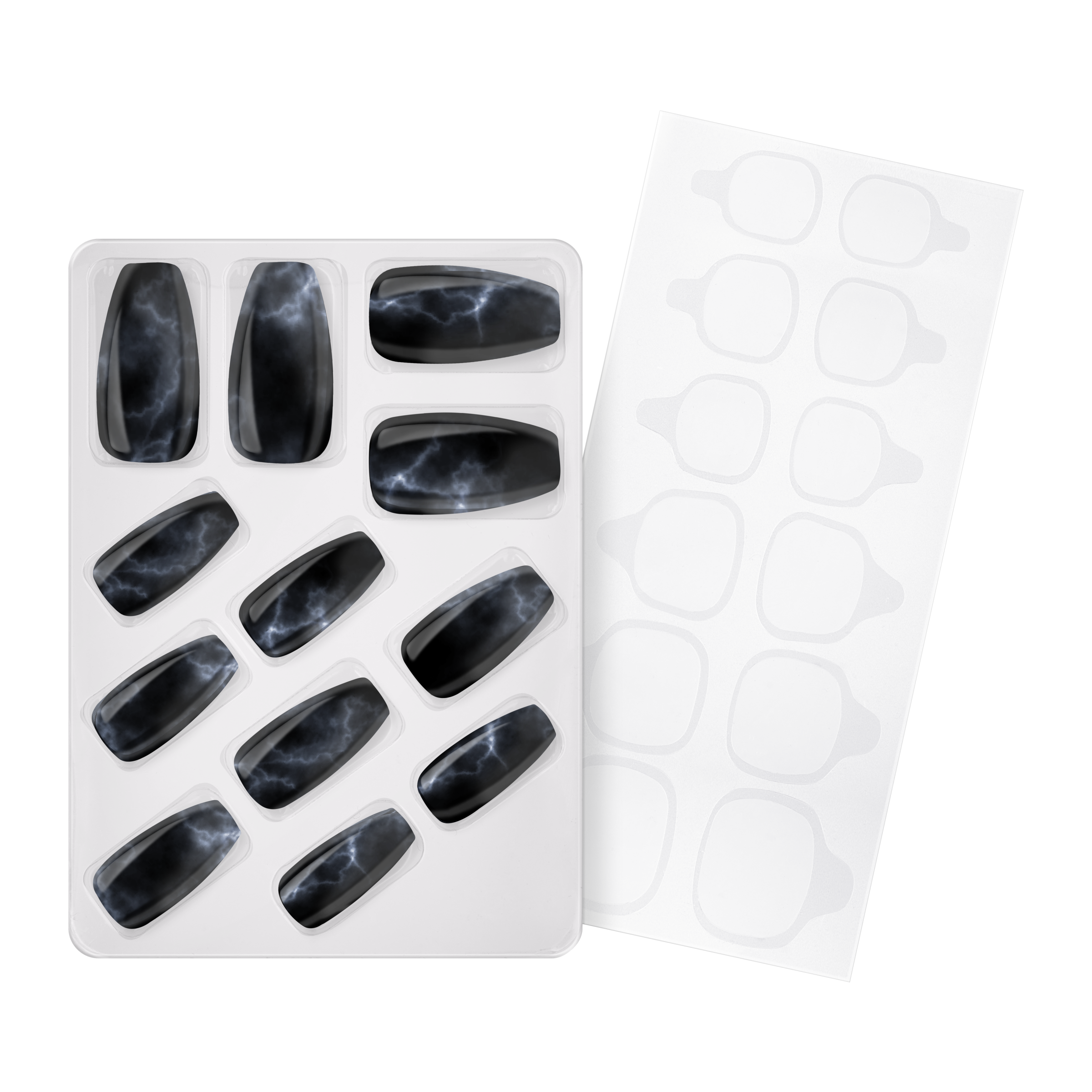 Umělé nehty v různých tvarech a barvách. Lze je snadno aplikovat během několika sekund – pro dokonalý look jako z nehtového salonu. Sada se skládá z 12 umělých nehtů a deseti lepících polštářků.