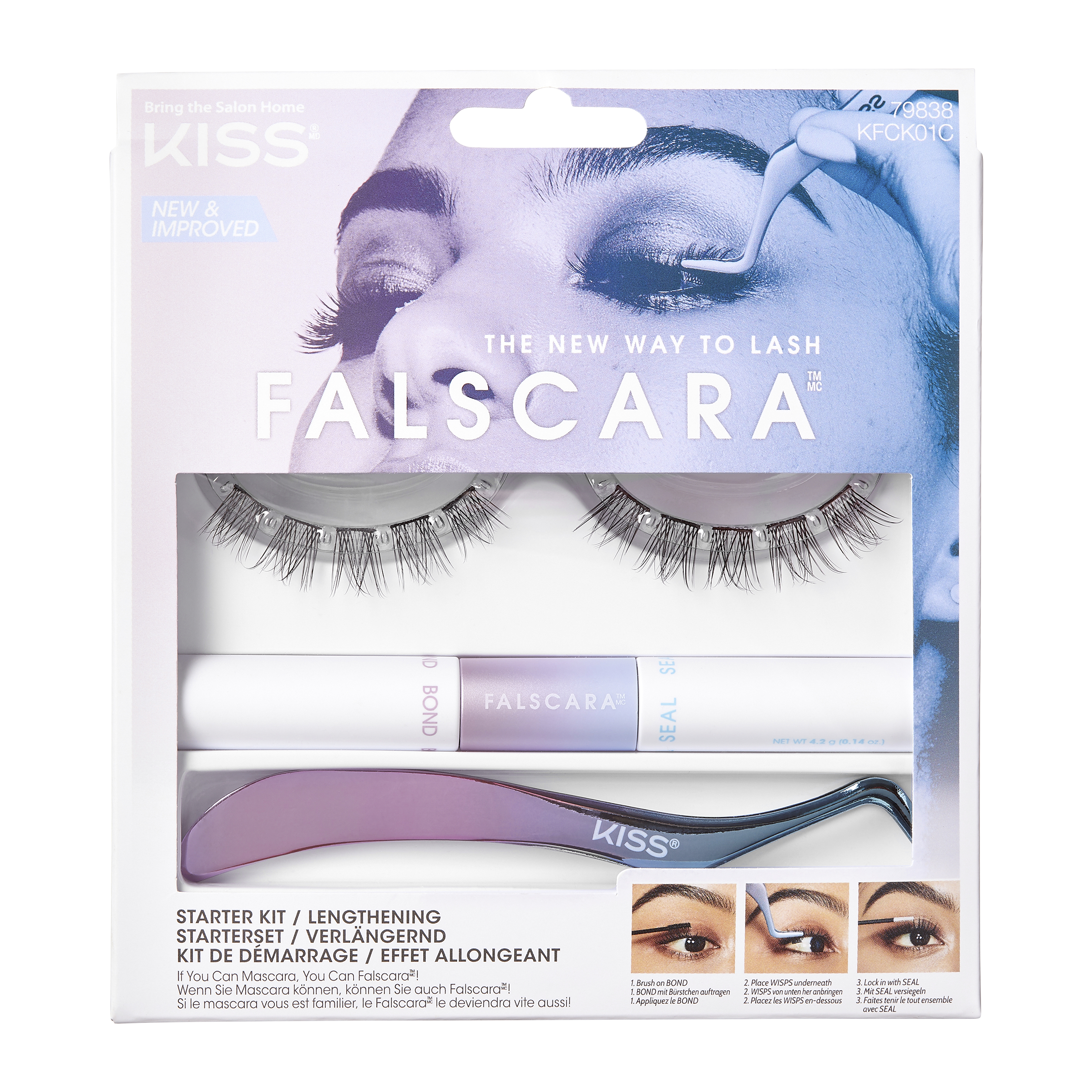 KISS Falscara Eyelash řasy - trsové, jednotlivé, pro denní nošení. K přizpůsobení vašeho vlastního vzhledu. S inovativním lepidlem Bond and Seal. KISS Falscara obsahuje pramínky navržené s jedinečným mikropáskem a vlákny s jemným peřím, které umístíte pod své přirozené řasy, nikoli nad ně. Výsledkem je hladký, úžasně přirozený vzhled řas.