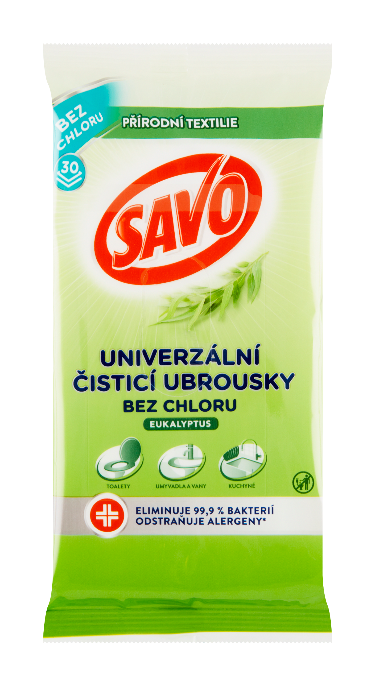 Savo novinka - univerzální čistící ubrousky bez chloru s vůní eukalyptu. Jednoduše vytáhnete a přetřete s nimi jakýkoliv povrch. Dokonale čistí a dezinfikují, a navíc krásně voní. Likvidují až 99,9 % bakterií a virů, odstraňují alergeny. Neškrábou a šetří čištěné povrchy i životní prostředí. Široké využití v domácnosti i na cestách.