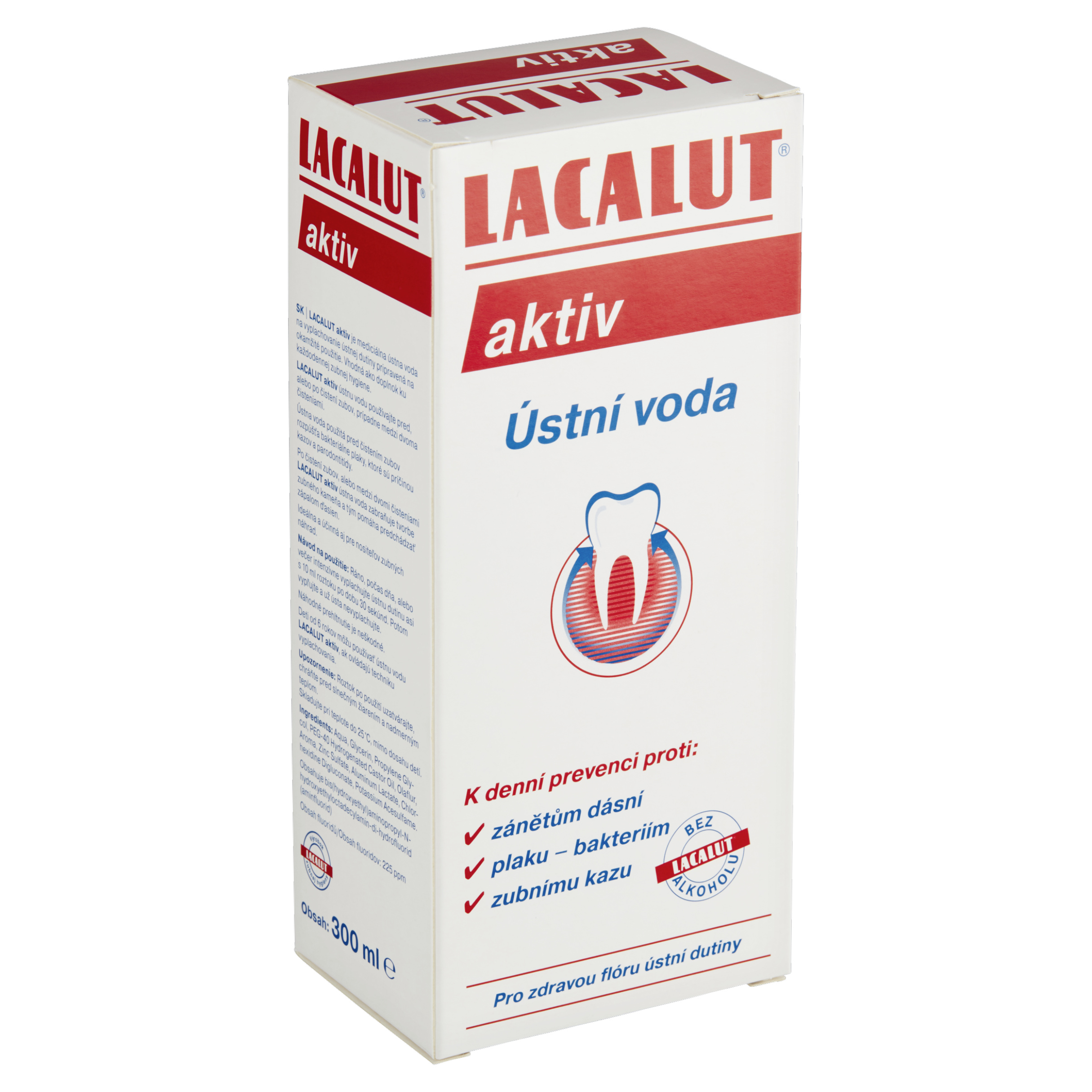 Lacalut aktiv je medicinální ústní voda připravená k okamžitému použití, vhodná k dennímu doplnění zubní péče. Lacalut aktiv ústní vodu používejte před nebo po čištění zubů, případně mezi čištěním. Před čištěním zubů uvolňuje bakteriální zubní povlak - jednu z hlavních příčin zubního kazu a parodontózy. Po čištění a mezi čištěním zubů ústní voda Lacalut aktiv zabraňuje tvorbě zubního kamene a působí tak preventivně proti zánětům dásní. Ideální a účinná i pro nositele zubních náhrad.