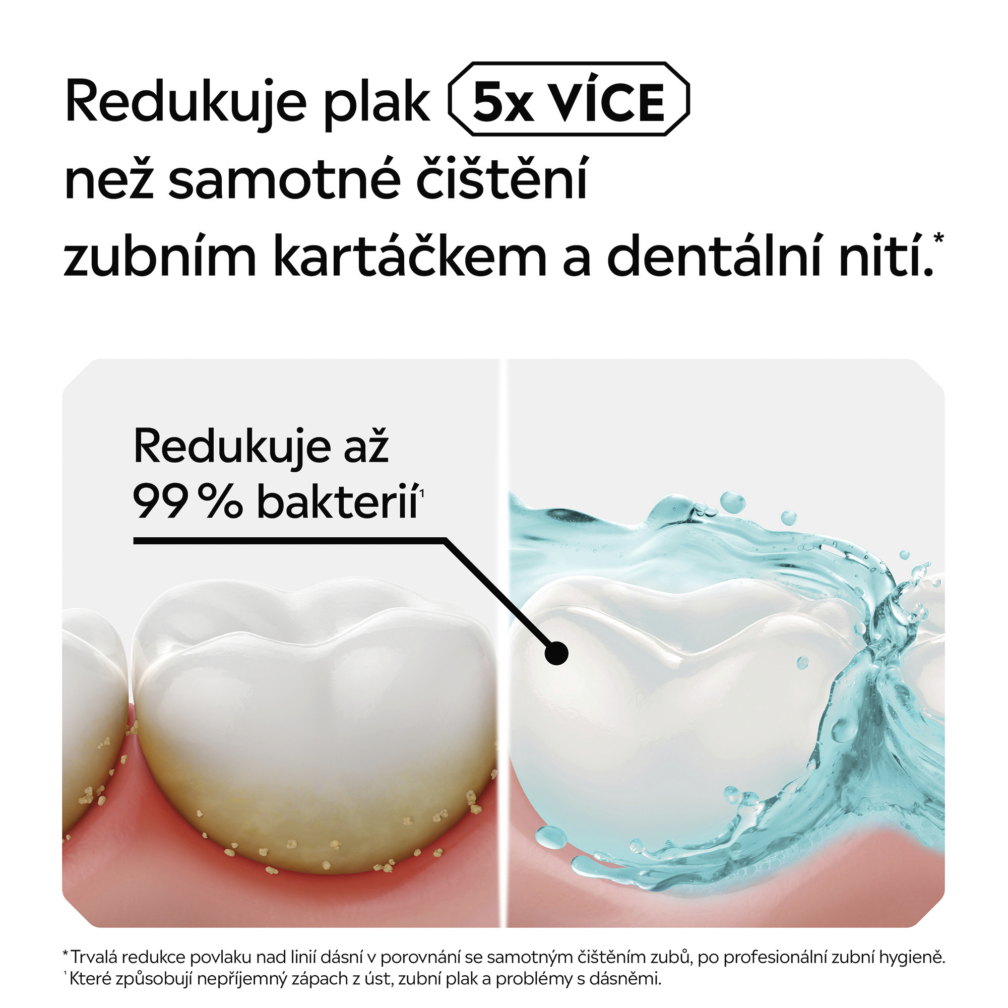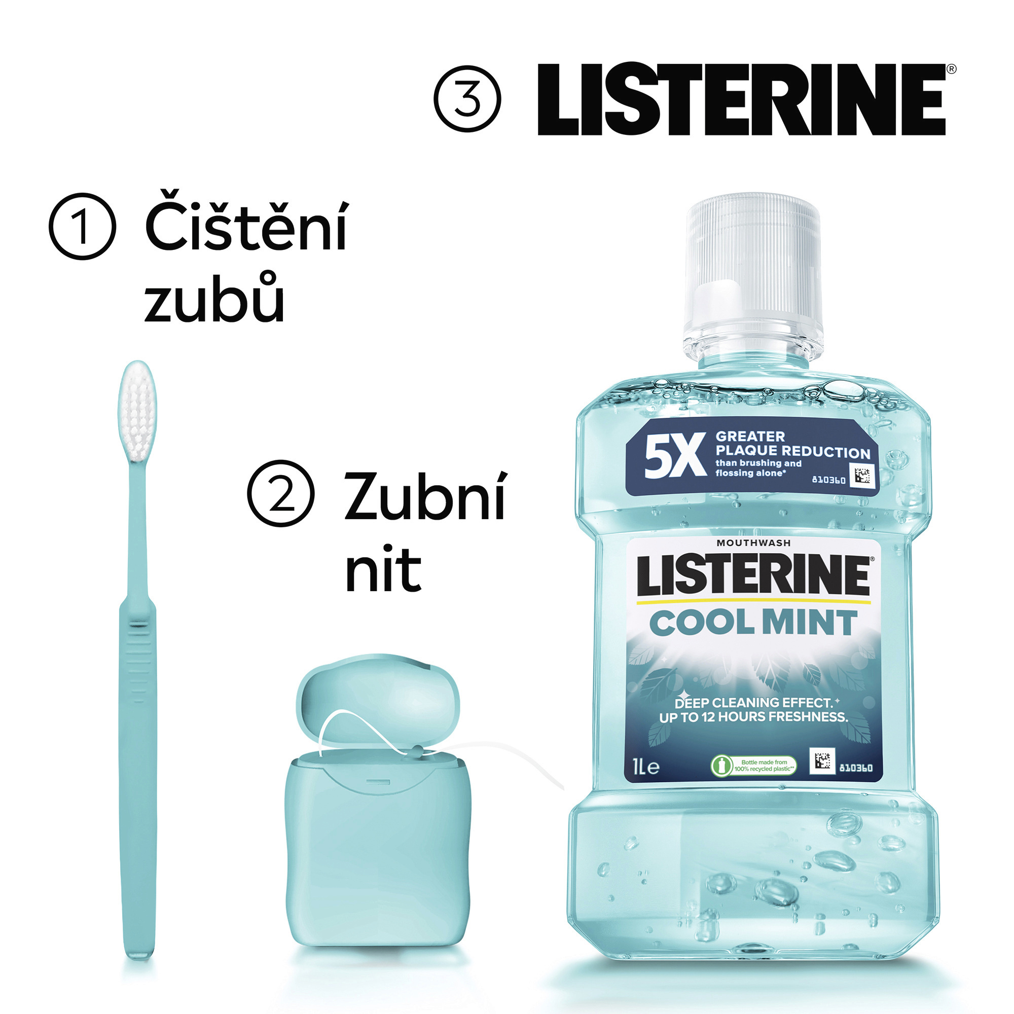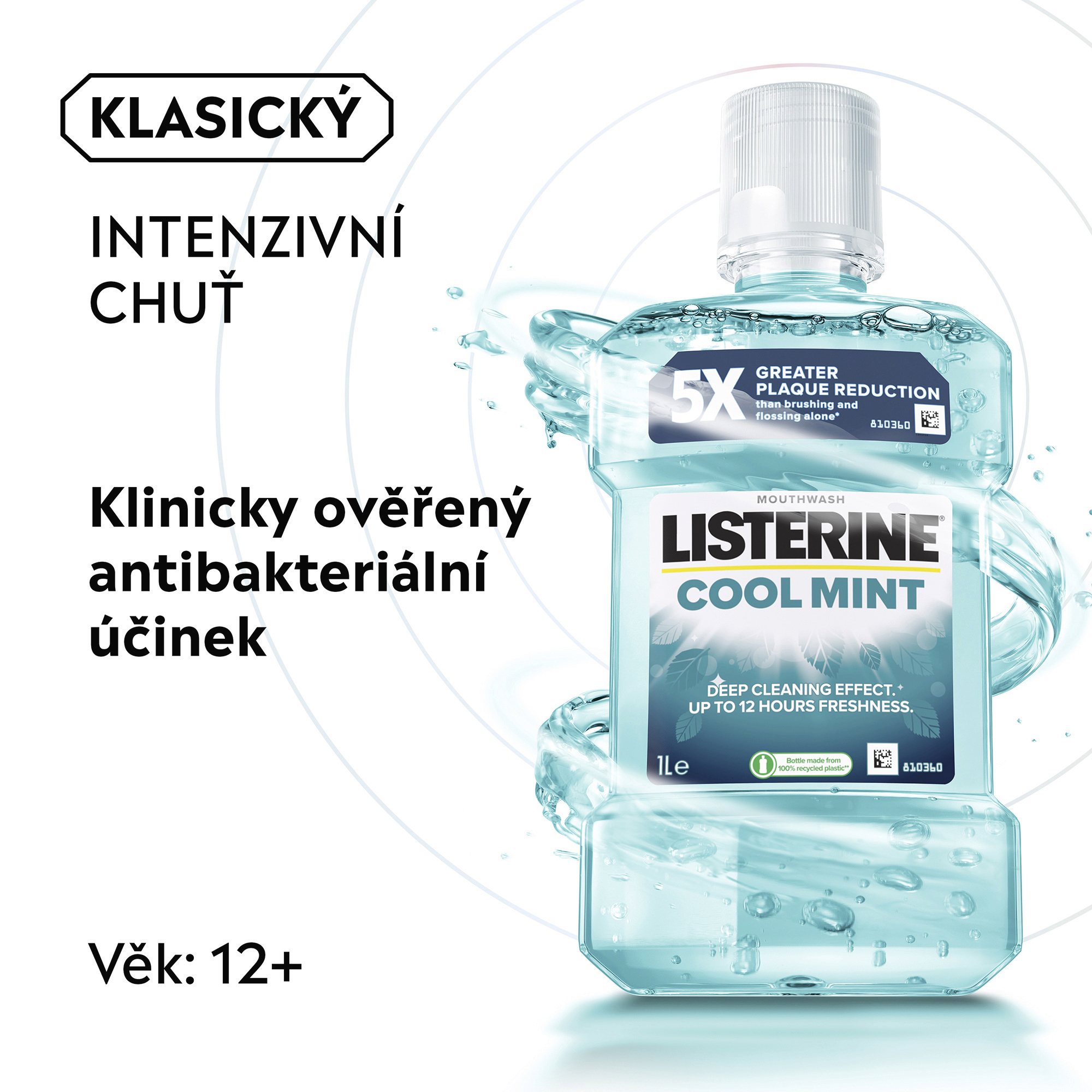 Díky jedinečné kombinaci esenciálních olejů účinně bojuje proti bakteriím i tam, kam se zubní kartáček nedostane: mezi zuby, na dásních a na jazyku. Omezuje zubní plak a chrání před jeho vznikem. Intenzivní mátová chuť poskytuje trvalou jistotu svěžího dechu. Láhev je vyrobená z 50% z recyklovaného plastu a 100% recyklovatelná. Vhodná pro dospělé a děti od 12 let. Pro dlouhodobé použití.