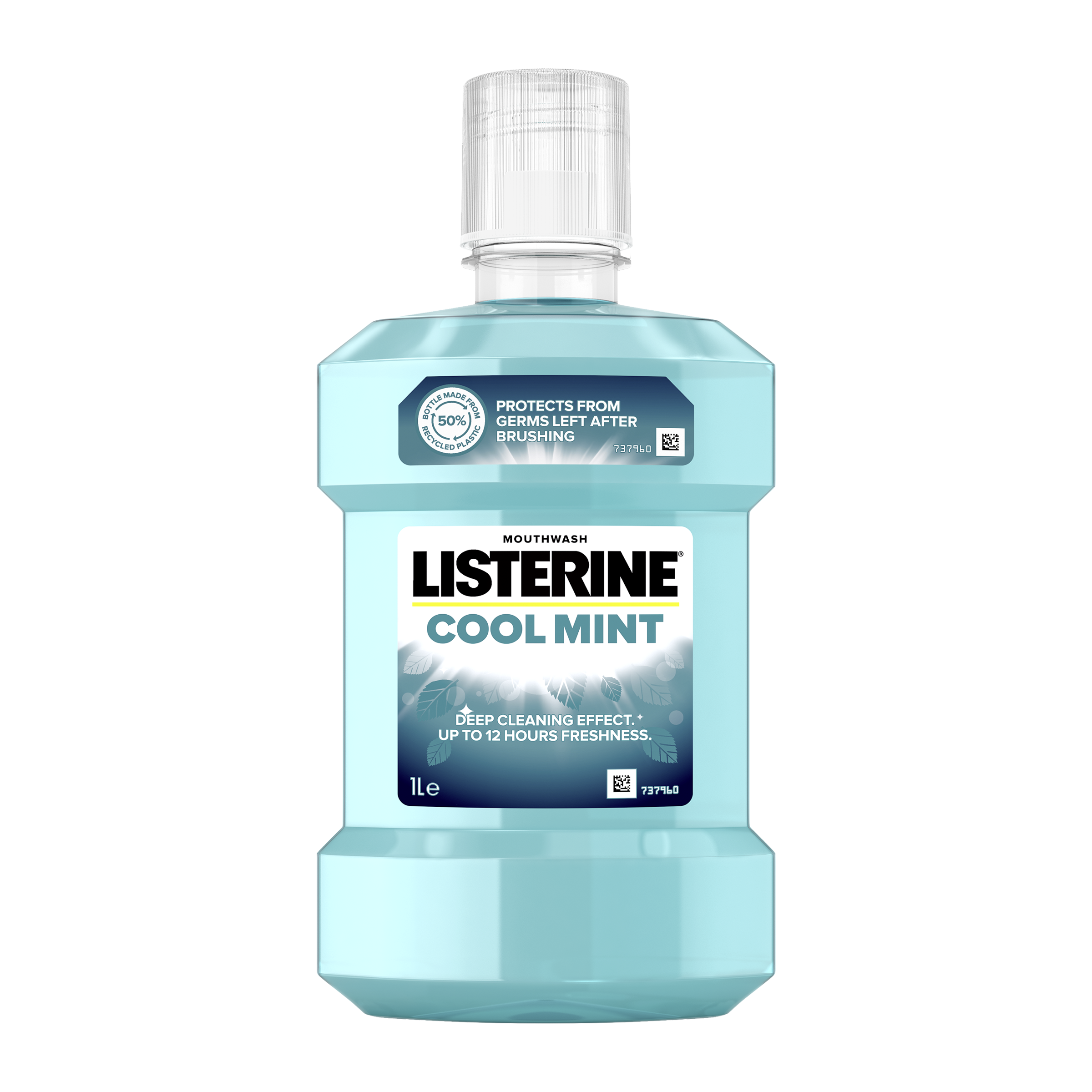 LISTERINE® COOL MINT, 1000 ml, ústní voda pro svěží dech a redukci vzniku zubního plaku, s intenzivní mátovou příchutí