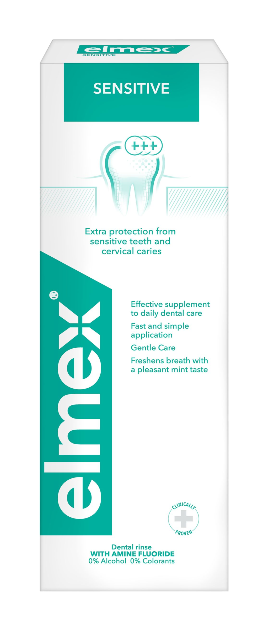 Citlivé zuby potřebují šetrnou péči, proto byste měli vyzkoušet ústní vodu elmex Gentle Care. Při ústupu dásní se odhalují zubní krčky, které byly dříve chráněné, stávají se citlivějšími a náchylnějšími ke kazu v oblasti ústního krčku. Nyní o ně můžete jemně pečovat díky této ústní vodě na citlivé zuby, která poskytuje ochranu před zubním kazem a má trojí účinek. Je to rychlý a jednoduchý doplněk vaší každodenní ústní hygieny, protože již za 30 sekund vyplachování fluoridová ústní voda dosáhne do celé ústní dutiny a pomáhá poskytnout ochranu. Díky technologii Neo Aminex je navržena k ochraně před zubním kazem. Tato ústní voda na citlivé zuby bez barviv a alkoholu* má příjemnou mátovou chuť a osvěžuje dech. Je také klinicky ověřená. Pro optimální ústní hygienu nejprve použijte mezizubní pomůcky, poté elmex Sensitive zubní pastu s kartáčkem elmex Sensitive a nakonec si ústa vypláchněte po dobu 30 sekund ústní vodou elmex Gentle Care. Dopřejte svým citlivým zubům jemnou a účinnou péči s touto ústní vodou. *Složení neobsahuje ethanol.