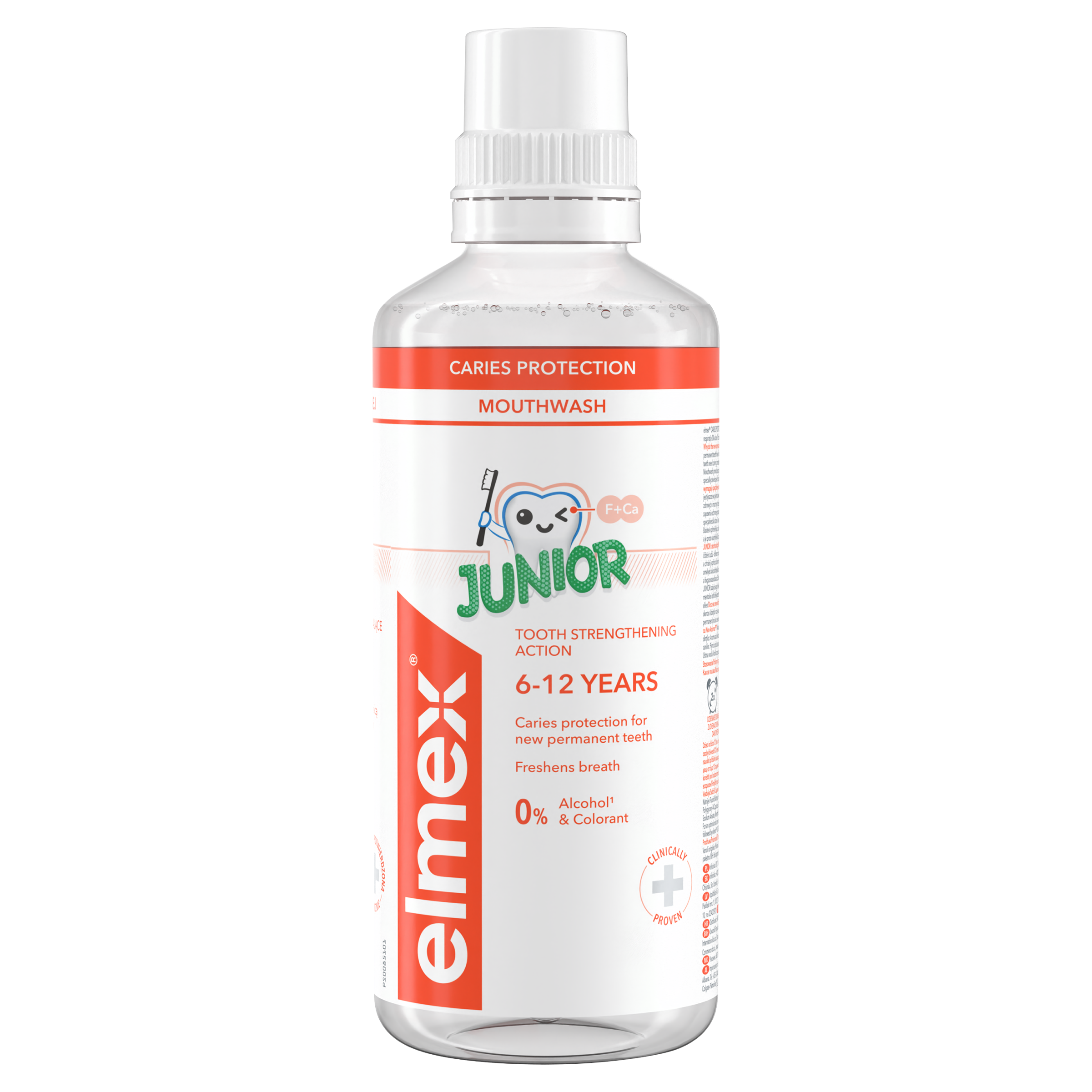 Dopřejte svým dětem pečující ochranu jejich nových stálých zubů s ústní vodou elmex Caries Protection Junior pro děti od 6 do 12 let. Tato dětská ústní voda byla speciálně vytvořena s technologií Neo Aminex pro remineralizaci zubů a poskytování ochrany před zubním kazem. Je to důležité, protože sklovina na nových stálých zubech, které se prořezávají, ještě není plně ztvrdlá a je náchylnější ke kazům. Používáním této dětské ústní vody pomůžete zajistit svým dětem potřebnou ochranu před zubním kazem pro jejich silné a zdravé zuby. Stačí pouhých 30 sekund vyplachování touto dětskou ústní vodou. Tato ústní voda bez alkoholu* je ideální pro děti s rovnátky a osvěžuje dech jemnou mátovou příchutí, která byla speciálně vyvinutá pro děti i dospívající. Je také klinicky ověřená. Pro optimální ústní hygienu nechte své děti nejprve použít mezizubní pomůcky, následně si zuby vyčistit zubní pastou elmex Anti Caries Junior Professional s kartáčkem elmex Junior 6-12 a nakonec si vypláchnout ústa ústní vodou elmex Caries Protection Junior. Chraňte nové stálé zuby svých dětí s ústní vodou elmex Caries Protection Junior. *Složení neobsahuje ethanol.